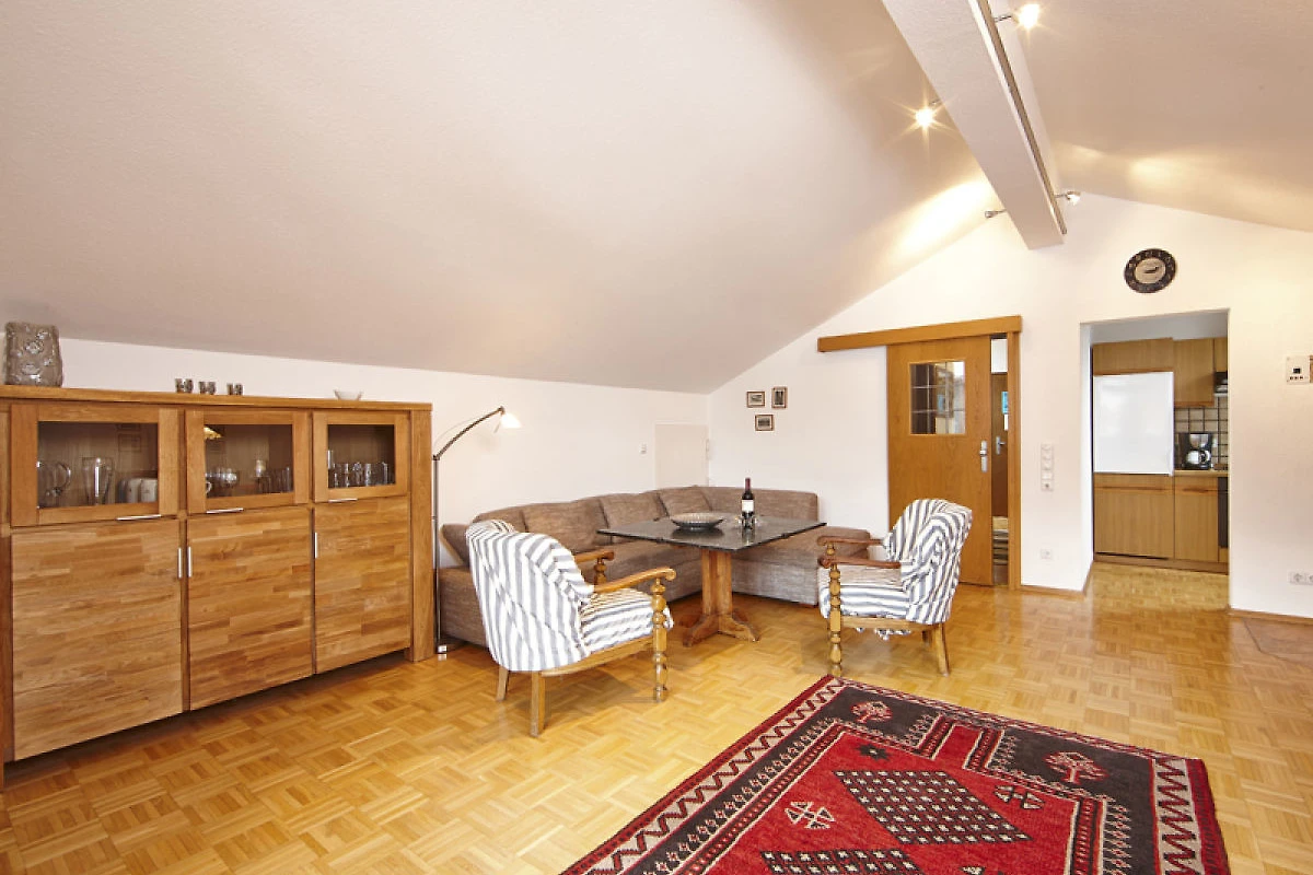 Die Dachgeschosswohnung befindet sich in einem ruhigen Wohngebiet und bietet Ihnen auf geräumigen 80 qm alles, was Sie für einen entspannten und erholsamen Urlaub benötigen. Zwei separate Schlafzimmer sorgen für einen erholsamen Familienurlaub oder einfach nur für das bisschen mehr an Platz. Ein sehr grosszügiges Wohn-/Esszimmer mit allem Komfort und einem gemütlichen Kachelofen lädt zu kuscheligen Stunden ein.