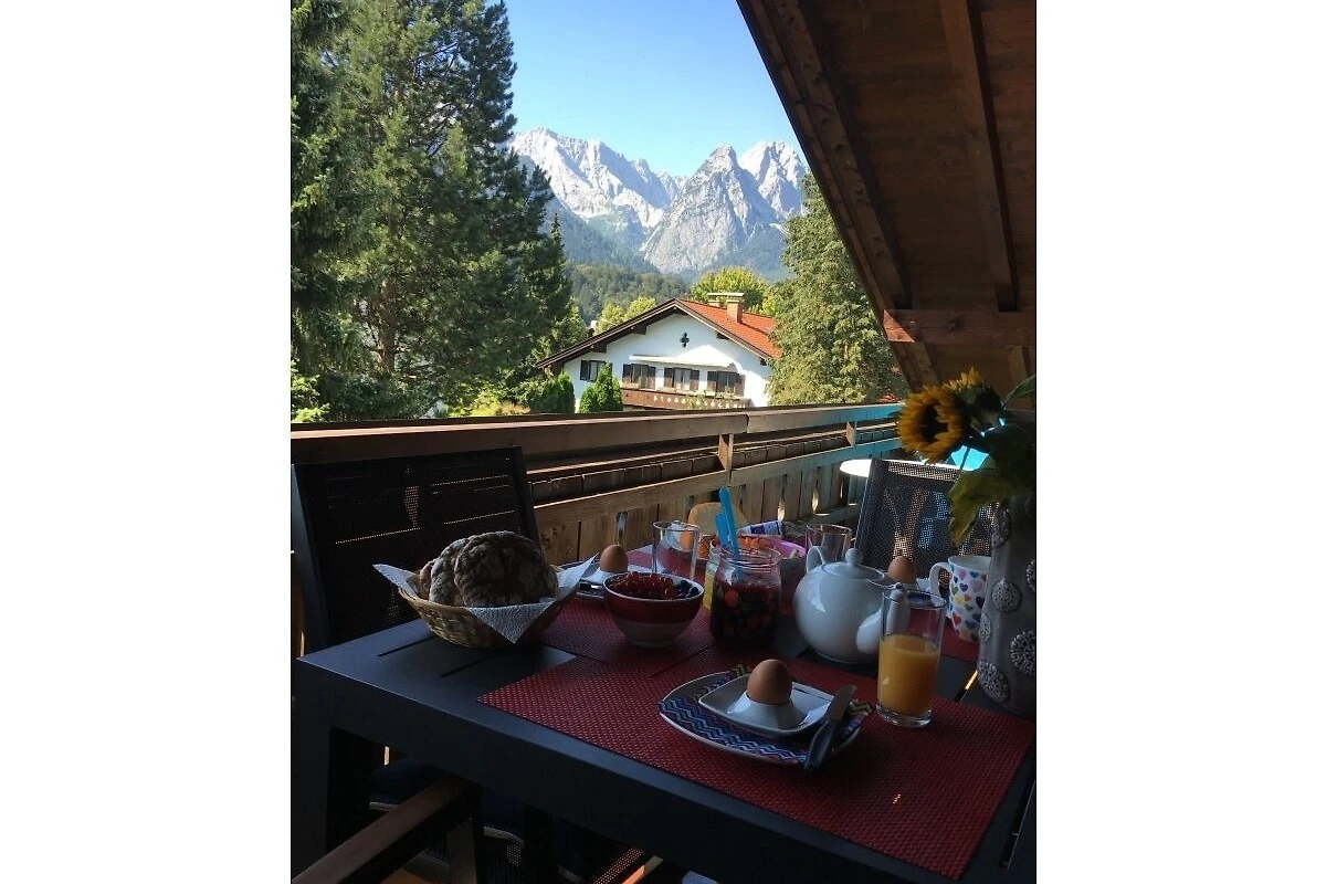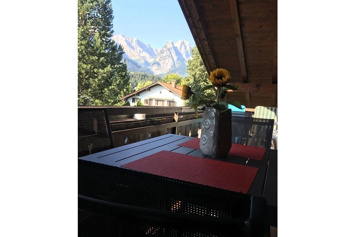 Geniessen Sie vom Liegestuhl aus die herrliche Aussicht auf das umliegende Bergpanorama von den beiden geräumigen Balkonen (Süd/Ost- (Zugspitzblick) und Nord/West-Ausrichtung).
