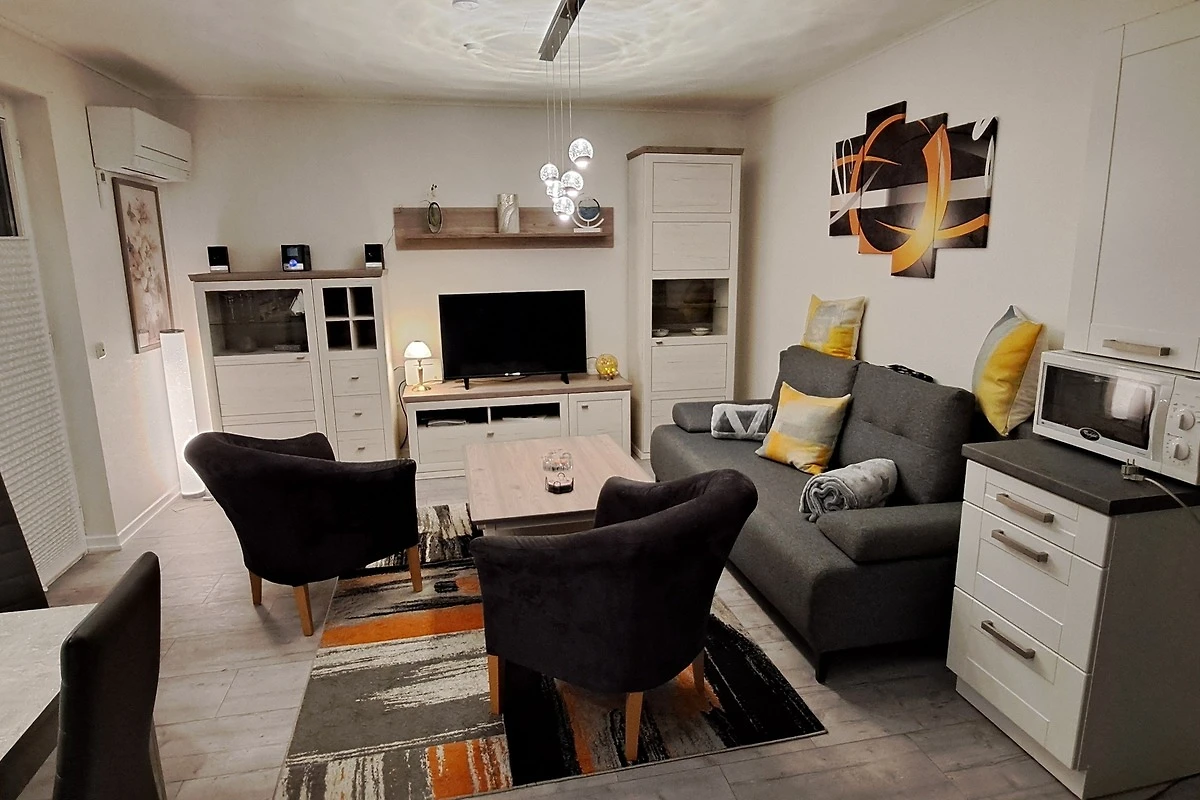 Der Bungalow bietet Platz für bis zu 4 Gäste auf 52 Quadratmetern Wohnfläche mit 1 Schlafzimmern sowie einem Boxspringschlafsofa im Wohnbereich und 1 Badezimmer. Die moderne und voll ausgestattete Küchenzeile verfügt über einen Gefrierschrank, Kühlschrank, Mikrowelle, Backofen, Kaffeemaschine, Besteck, Geschirr und vieles mehr. Geniessen Sie entspannte Stunden im gemütlichen Wohnzimmer mit TV und kostenlosem WLAN oder entspannen Sie auf dem Balkon, oder im Garten.