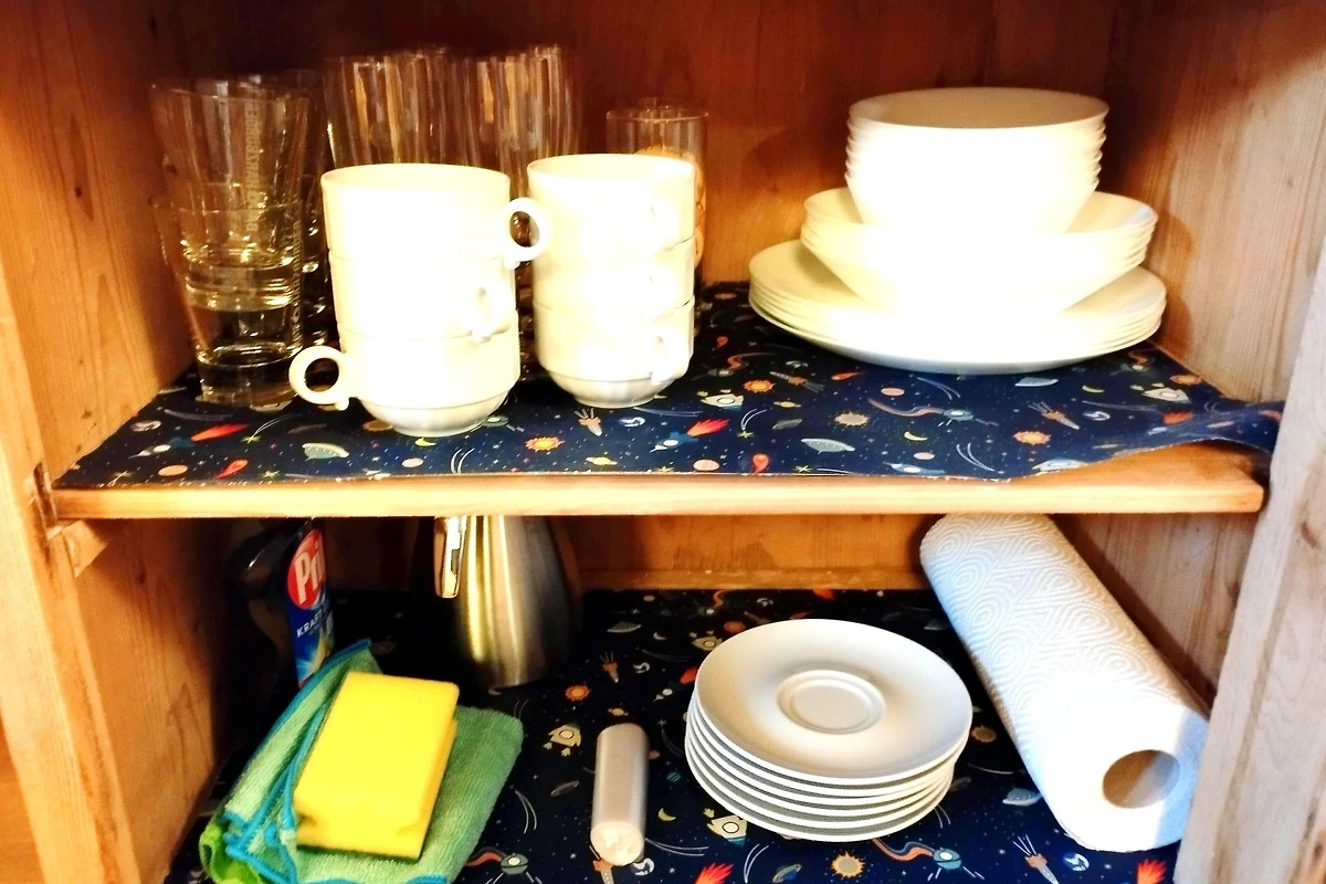 Geschirr und Besteck für 6 Erwachsene und 2 Kinder