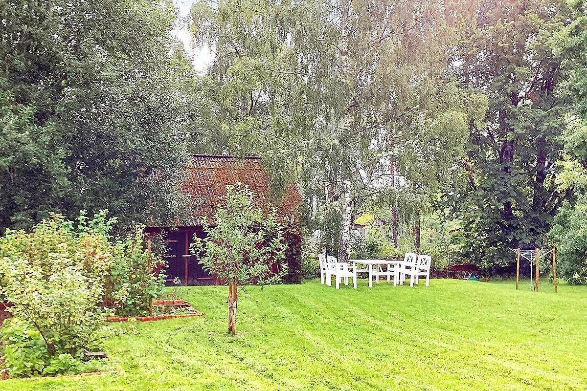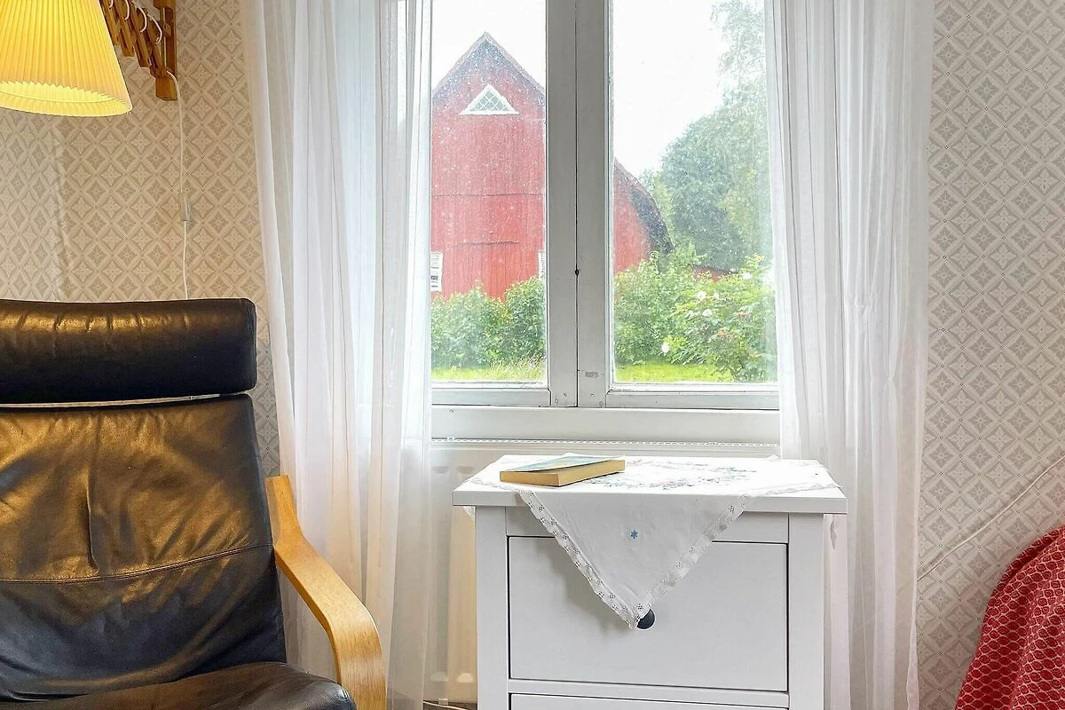 Willkommen in einem ländlich gelegenen, typisch schwedenrotem Ferienhaus in ruhiger Umgebung! Ringsum gibt es diverse Badeufer und zum Haus gehört auch ein Kanu für diejenigen, die gerne paddeln möchten. Das ältere Ferienhaus bietet wohnlichen Charme. Das Interieur ist warm und persönlich, wobei Neues auf Altes im klassischen, schwedischen Stil trifft. Der Garten draußen ist groß. An der Rückseite des Hauses können Sie draußen völlig ungestört sitzen und die Kinder haben viel Platz zum Toben. Der Eingang zum Haus befindet sich an der Rückseite. Sie betreten zuerst eine kleinere Diele. Geradeaus befindet sich das Badezimmer, das 2020 renoviert wurde. Es ist komplett gefliest mit Waschbecken/WC und Dusche. Auf der linken Seite befindet sich das Herzstück des Hauses; die Küche. Hier gibt es einen Essbereich für 4–6 Personen. Der Vorteil dieses Hauses besteht darin, dass es Türen und Durchgänge zu jedem Raum gibt, sodass das Haus geräumig wirkt. In zwei der Räume auf der unteren Ebene gibt es außerdem Kamine. Sehr charmant! Außerdem gibt es in der Küche einen neuen Kaminofen, der an kühleren Abenden gut wärmt. Brennholz kaufen Sie im nächstgelegenen Geschäft. Hinter einer Tür befindet sich auch eine Waschmaschine, ideal falls Sie mit kleineren Kindern reisen oder länger bleiben möchten. Direkt auf der linken Seite befindet sich das eine Schlafzimmer des Hauses mit einem Doppelbett (160 cm breit). Im gemütlichen Wohnzimmer gibt es ausreichend Sitzgelegenheiten für die ganze Familie sowie einen Holzofen. Auf der rechten Seite befindet sich das zweite Schlafzimmer des Hauses mit zwei je 90 cm breiten Einzelbetten. Hier steht auch ein Sessel, falls Sie lesen und sich zurückziehen möchten. Geradeaus befindet sich der alte Haupteingang, bei dem es sich nun um eine verglaste Veranda handelt. Hier ist es super gemütlich, man kann die Abendsonne noch lange genießen oder nach Einbruch der Dunkelheit Kerzen anzünden. Die Treppe hinauf führt in die obere Etage des Hauses. Hier muss man aufpassen, dass man sich nicht den Kopf stößt und die Treppe ist etwas steil. Direkt rechts davon befindet sich das dritte Schlafzimmer des Hauses mit einem 160 cm breiten Bett. Es gibt auch einen Sessel und einen Schreibtisch. Die massiven Holzwände wurden in einem hellen Blauton gestrichen. Das Haus ist älter und vermittelt eine gemütliche Atmosphäre. Das Treppengeländer kann sich locker anfühlen, da es entfernt werden kann. Seien Sie ggf. beim Hoch- und Herunterheben von Möbeln vorsichtig. Die restlichen Räume auf der oberen Ebene dient der Lagerung und sind ausschließlich für den privaten Gebrauch bestimmt! Das Ferienhaus bietet somit Platz für eine größere Familie von 4–6 Personen. Für diejenigen, die gutes Essen und schöne Naturerlebnisse genießen möchten, gibt es viel zu tun. Der Wald ist direkt außerhalb der Grundstücksgrenze erreichbar und in der Gemeinde gibt es mehrere Wanderwege, darunter den schönen Jälmåleden. Das Kanu liegt in Lagmanshagasjön (4 km) mit einem 300 Meter langen feinen Sandstrand und kleineren Stränden, die nur mit dem Kanu erreichbar sind. In Limmared (17 km) gibt es Glasets hus mit einem guten Mittagsbuffet und es gibt auch viele Geschäfte, die antike Möbel und Einrichtungsgegenstände verkaufen. Im Isaberg Mountain Resort (18 km) gibt es sowohl im Sommer als auch im Winter ein gutes Restaurant und eine große Auswahl an Aktivitäten für die ganze Familie. Top-Attraktionen in der Umgebung • Isaberg Mountain Resort • Haus aus Glas (Glasets hus) in Limmared • Antikrundan in Limmared • Kroksjöns Angelcamp • Der Jälmåleden • Die Bauernhöfe rund um den See mit Torpa-Steinhaus und Hofsnäs-Herrenhaus • Marjeboleden • Strömsfors Brukssamhälle • Grüne Gruva • Ort zum Schwimmen: Visen • Uddebo-Wanderwege