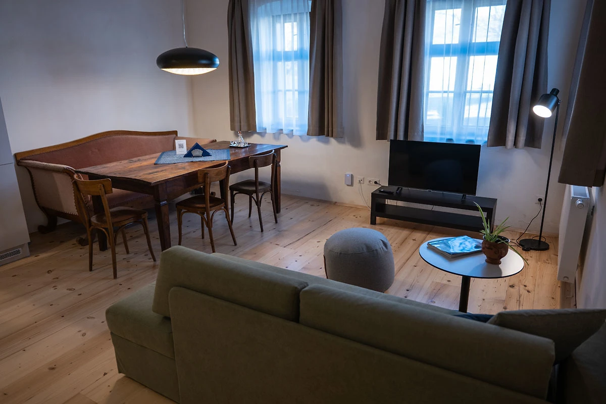 Der Hof ist 200 Jahre alt und steht unter Denkmalschutz. Insgesamt haben wir 5 Ferienwohnungen. In unserem Kramasuri findet man lokalen Wein, Säfte und Bier sowie Snacks. Weiters eine Waschmaschine und Trockner, Kinderspielzeug, Gesellschaftsspiele und weiter Kochutensilien.