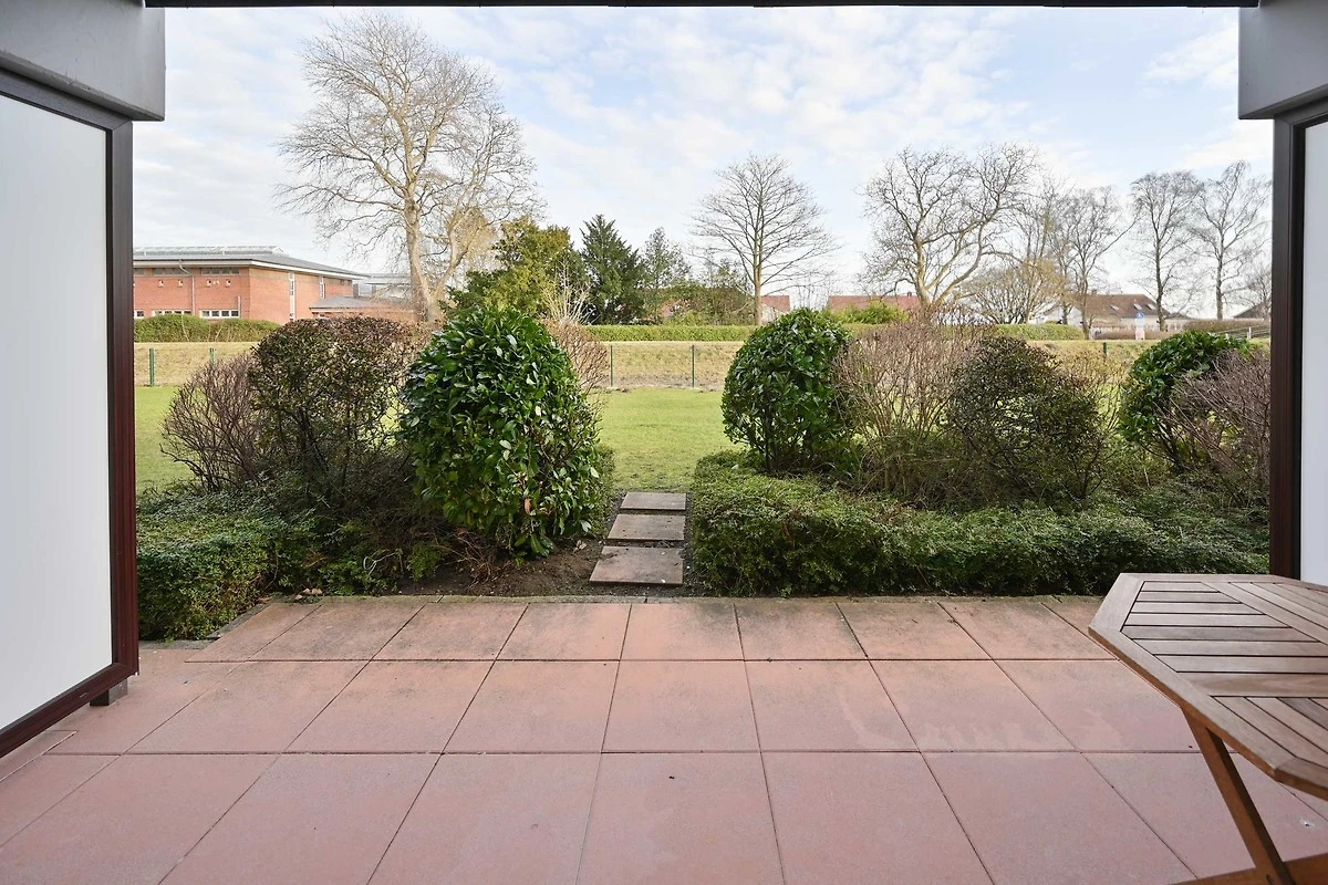 Direkt am Wohnbereich ist die Terrasse gelegen, die mit Sitzmöbeln ausgestattet ist. Da die Grünanlage hier angrenzt, können Sie hier entspannte Momente erleben.