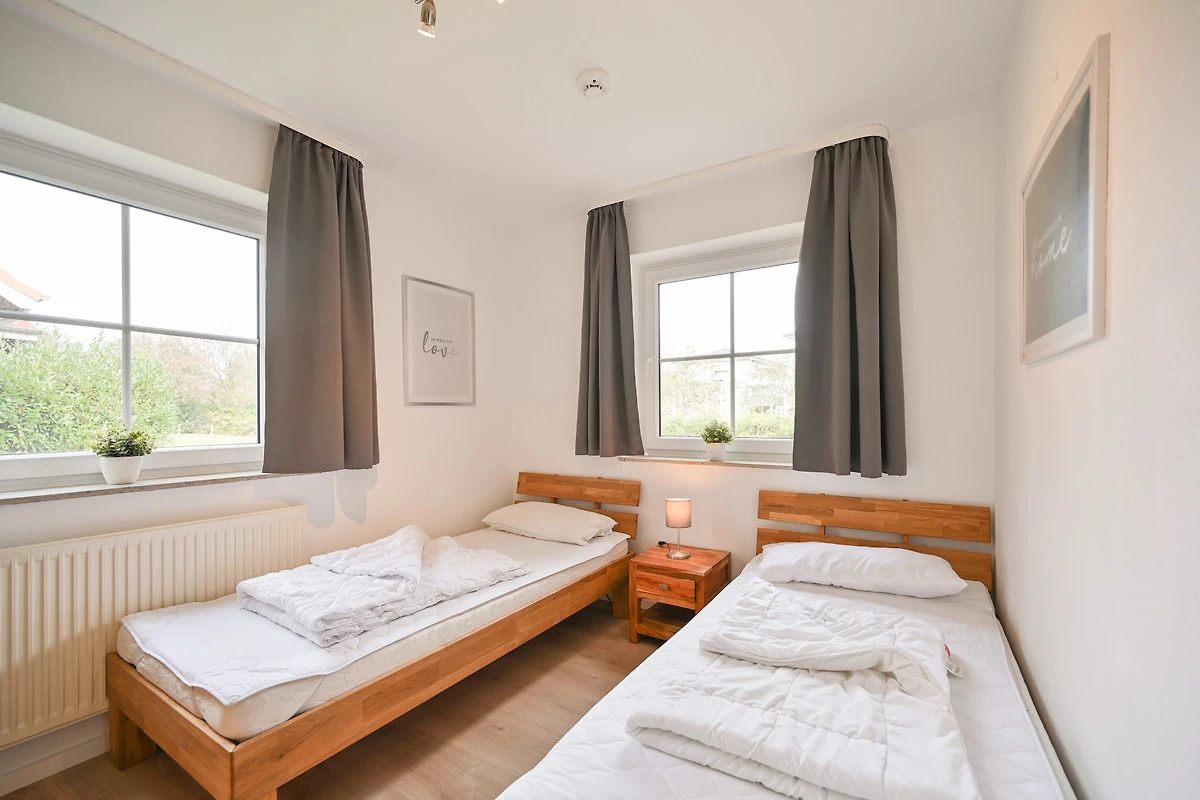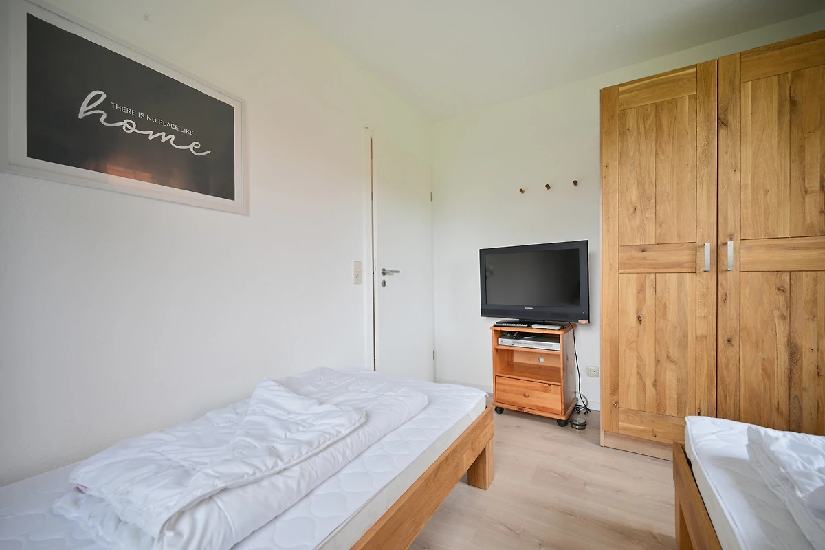 Im Kinderzimmer stehen zwei Einzelbetten ( 0,90m x 1,90m) mit einem Nachttisch. (hier steht ein zweiter TV, der über keinen TV-Empfang verfügt, dieser geht nur mit DVD Zugang und HDMI Zugang)