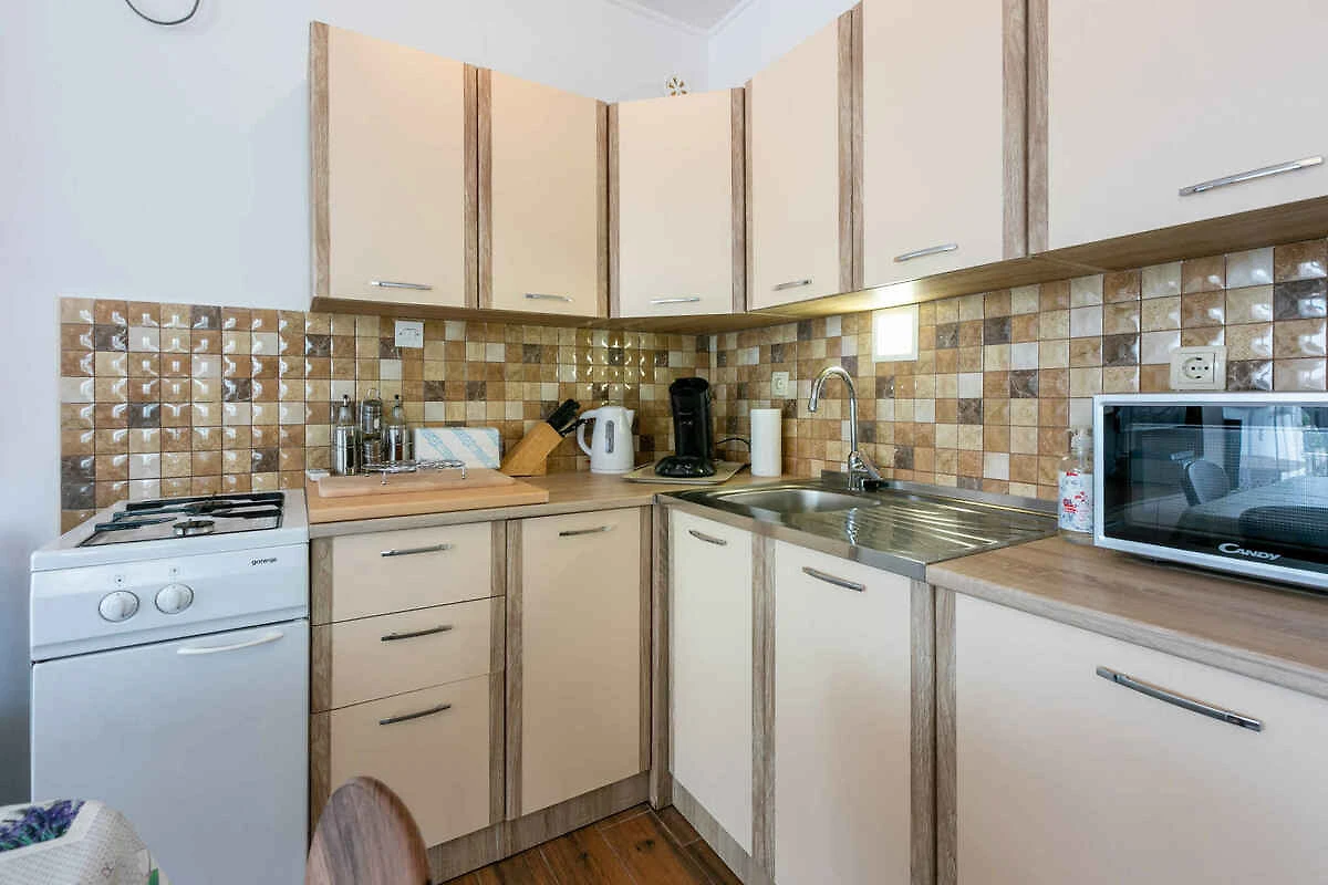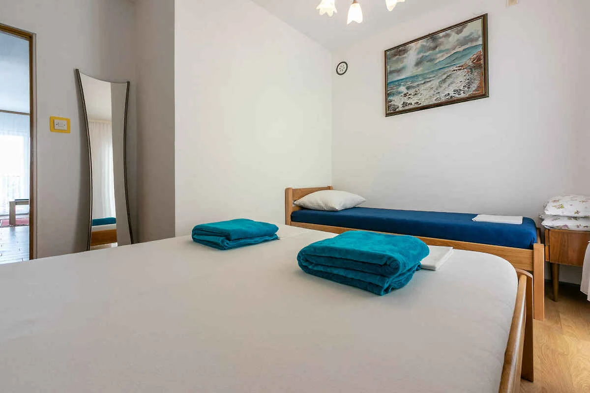 Selce. Die Ferienwohnung befindet sich auf einem offenen Gartengrundstück. Die Zufahrt erfolgt über eine Nebenstrasse (asphaltiert). Parkplatz (für 1 Pkw) auf dem Grundstück.