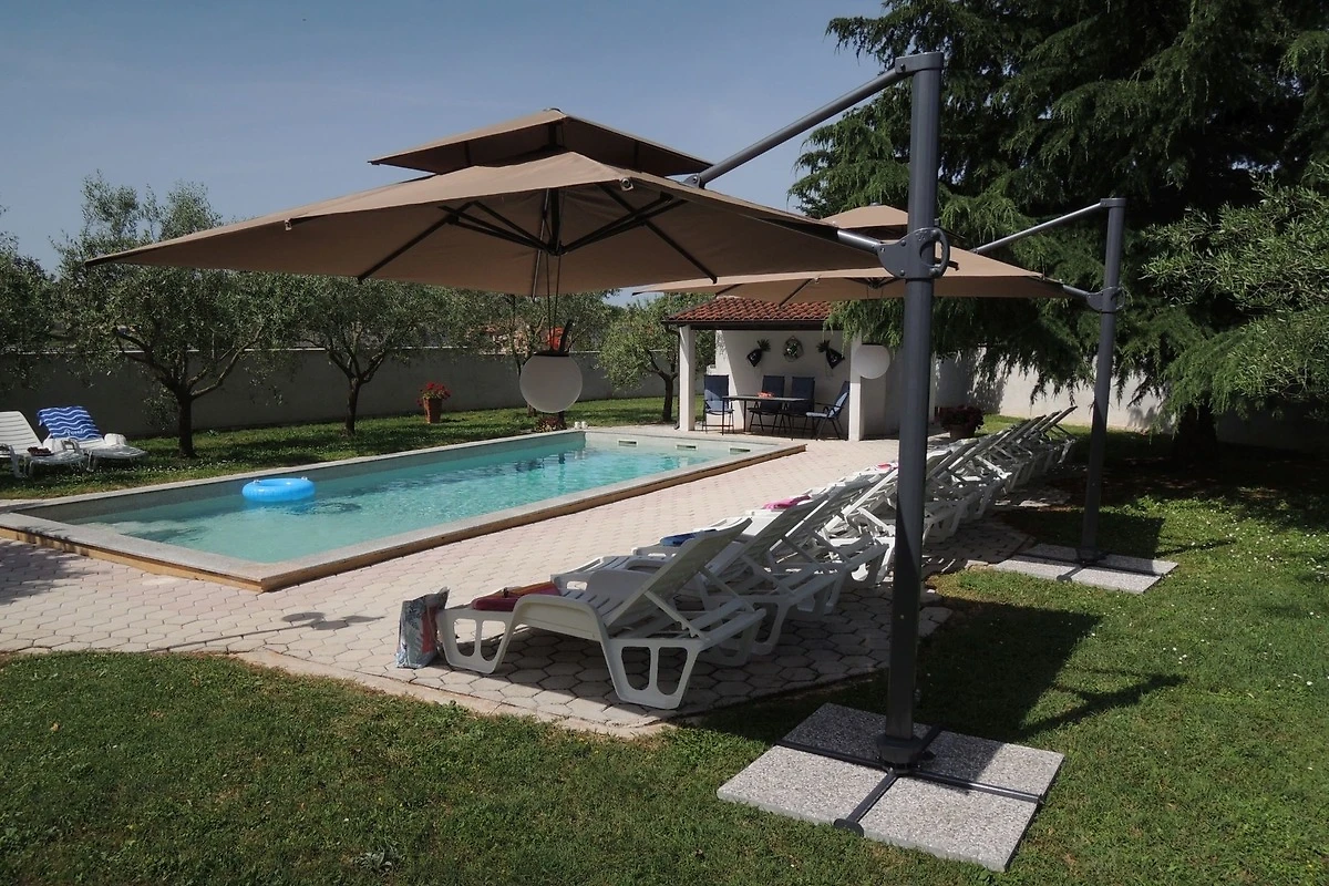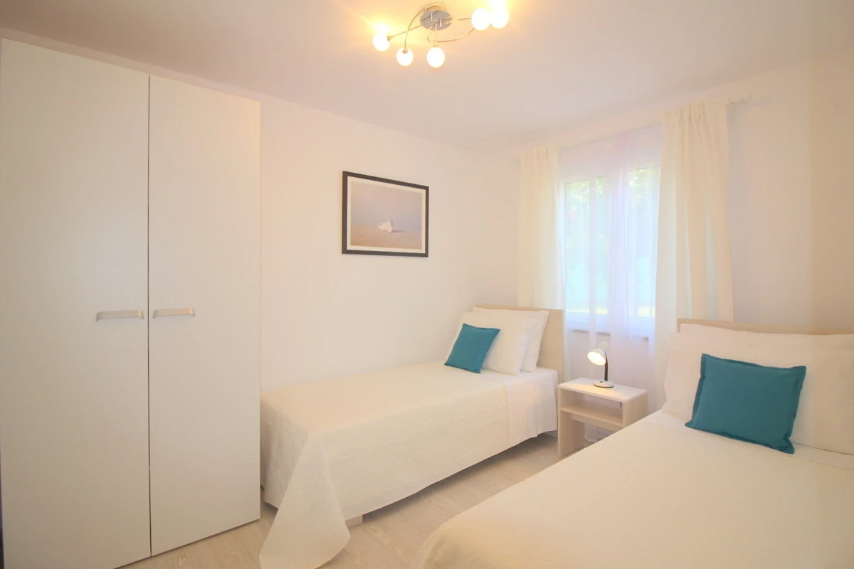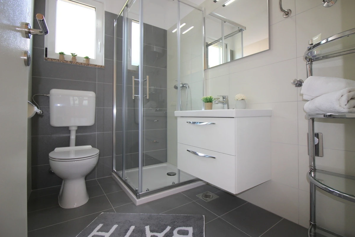 Modern eingerichtete, komfortable Bungalows. Gemütliche Wohnung, die alles für einen komfortablen Urlaub bietet. Klimaanlage im Wohnzimmer. Auf einem vollständig umzäunten Gelände mit Zugangstor liegt der kleine Bungalowpark Lorena. Verteilt über den grünen und gut gepflegten Garten stehen insgesamt 8 aneinander gereihte Bungalows und ein Haus mit 2 Wohnungen.. Jeder Bungalow verfügt über eine eigene überdachte Terrasse mit Gartenmöbeln, und Aussicht auf den Garten. Zusätzlich verfügen Sie über einen gemeinschaftlichen Grill und ein herrliches Schwimmbecken mit Salzwasser. Einkäufe 100 - 150m Einkauzentrum Kaufland , Lidl , Muller. Restaurant cca 200 m , Grill und Caffe 150 m .nDoppelhaushälfte mit 58 m² für 2- 4 Personen, Parterre: offene Küche (Kaffeemaschine, 4 Kochplate Mikrowelle, Kühl-/Gefrierkombination), Wohn/Esszimmer (Schlafcouch 1 Pers., TV (20 Internationale TV-Kanäle, Keine niederländischen Fernsehsender), Klimaanlage), Schlafzimmer (Doppelbett), Schlafzimmer (2x Einzelbett), Badezimmer (Dusche, Toilette). Separate WC . Waschmaschine (Gemeinschaftliche Nutzung mit anderen Gästen), Terrasse (überdacht), Gartenmöbel, BBQ (Gemeinschaftliche Nutzung mit anderen Gästen), Parkplatz in gesperte Hoff, Swimmingpool mit Salzwasser (Gemeinschaftliche Nutzung mit anderen Gästen, 9 x 4 m., geöffnet von April bis einschliesslich Okt)