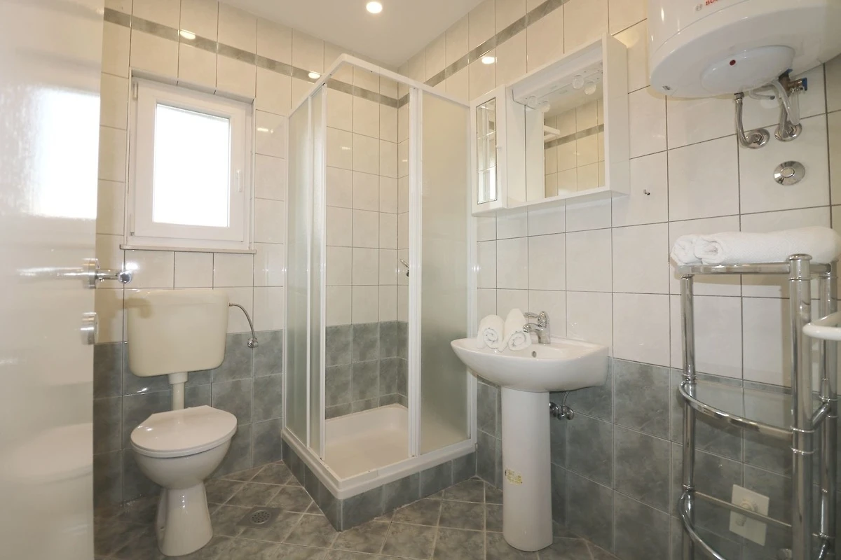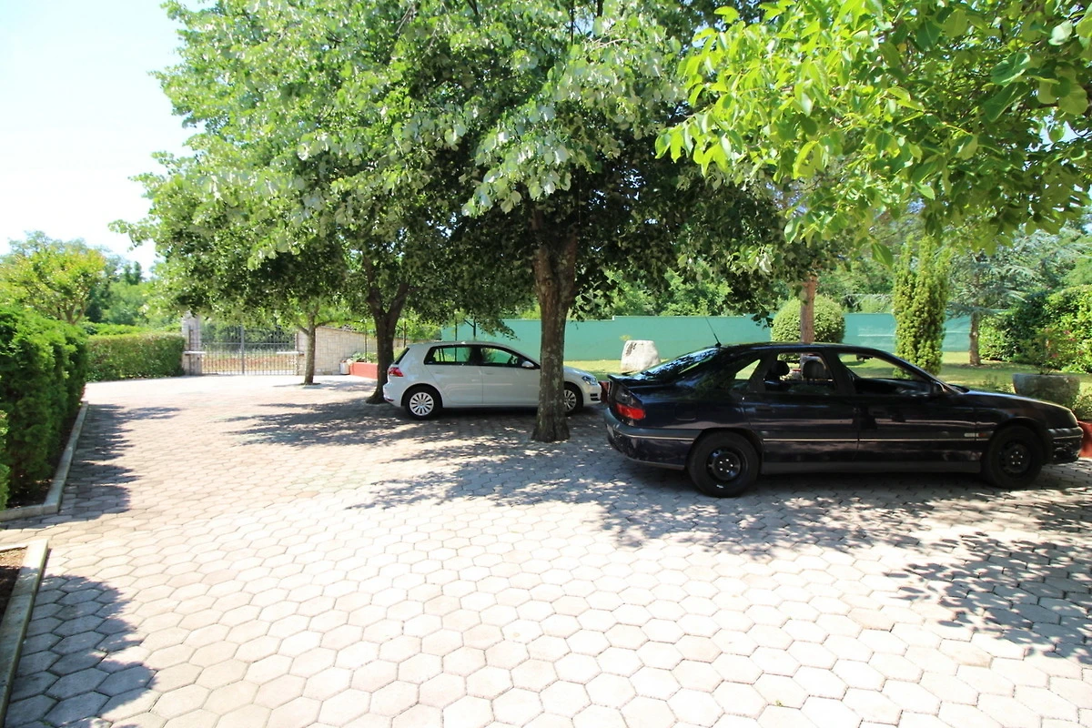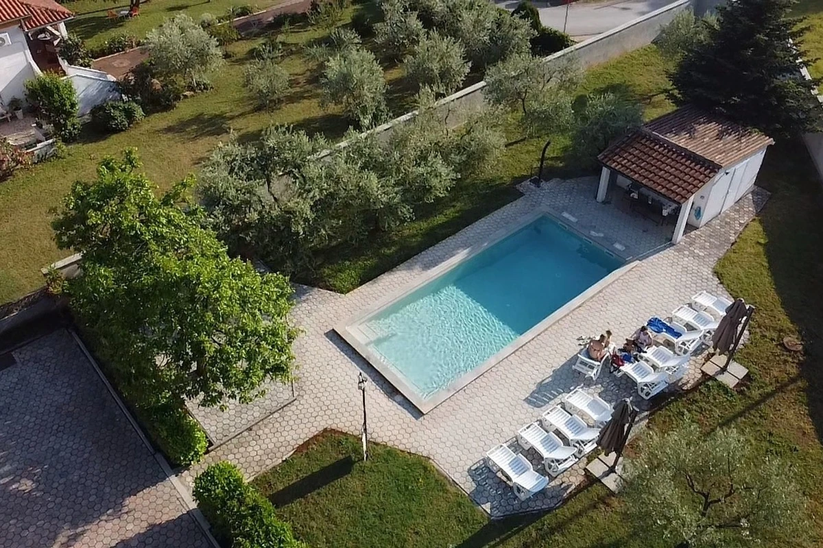 Doppelhaushälfte mit 62 m² für 2- 5 Personen, Parterre: offene Küche (Kaffeemaschine, 4 Kochplate Mikrowelle, Kühl-/Gefrierkombination), Wohn/Esszimmer (Schlafcouch 1 Pers., TV (20 Internationale TV-Kanäle, Keine niederländischen Fernsehsender), Klimaanlage), Schlafzimmer (Doppelbett), Schlafzimmer (2x Einzelbett), Badezimmer (Dusche, Toilette). Separate WC . Waschmaschine (Gemeinschaftliche Nutzung mit anderen Gästen), Terrasse (überdacht), Gartenmöbel, BBQ (Gemeinschaftliche Nutzung mit anderen Gästen), Parkplatz in gesperte Hoff, Swimmingpool mit Salzwasser (Gemeinschaftliche Nutzung mit anderen Gästen, 9 x 4 m., geöffnet von April bis einschliesslich Okt). nEinakuzentrum , Restaurant, Grill , Caffe nur 150 -200 m .Nur cca 2,5 km vom historischen Zentrum von Porec und 2,5 km vom Strand entfernt. Eine gute Möglichkeit, das raue Hinterland zu erkunden ist mit dem Mountainbike. Fahrradverleih 2,5 km. Sportliebhaber können auch paragliden, Wasserski fahren und ein (Segel-) Boot der Jetskis mieten. Neugierig zu erfahren, was so alles unterwasser lebt? Besuchen Sie dann das Aquarium. 55 km südlich von Porec liegt das touristische Pula. Ein Besuch des Amphitheaters aus dem 1. Jahrhundert nach Christus darf hier nicht fehlen. Von Fazana (50 km) aus können Sie mit dem Boot auf die Brioni-Inseln fahren.