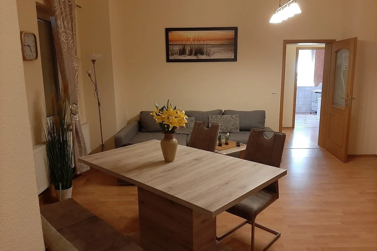 Unweit vom Strand des Geiseltalsees, im Ortsteil Stöbnitz, befindet sich die hübsche Ferienwohnung der Familie Ehrich in einer sanierten Villa. Die Ferienwohnung befindet sich in der Hochparterre und ist komfortabel mit allem Notwendigen eingerichtet.