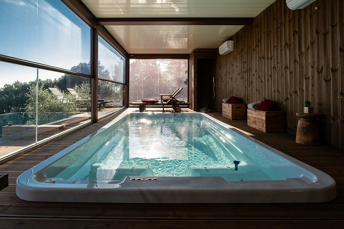 Es gibt außerdem ein überdachtes Panorama-Spa (ein Gegenstrom-Schwimmbecken mit Liegen und Hydromassagesitzen sowie eine Erlebnisdusche mit einem Tee-/Zen-Bereich und einem Yoga-Bereich mit Liegen, um die Sonne zu begrüßen). Die Gäste können entspannende Massagen genießen, während sie eine spektakuläre und exklusive Aussicht haben, sowie einen Aperitif, der direkt in der Wanne oder am Belvedere-Pavillon serviert wird.