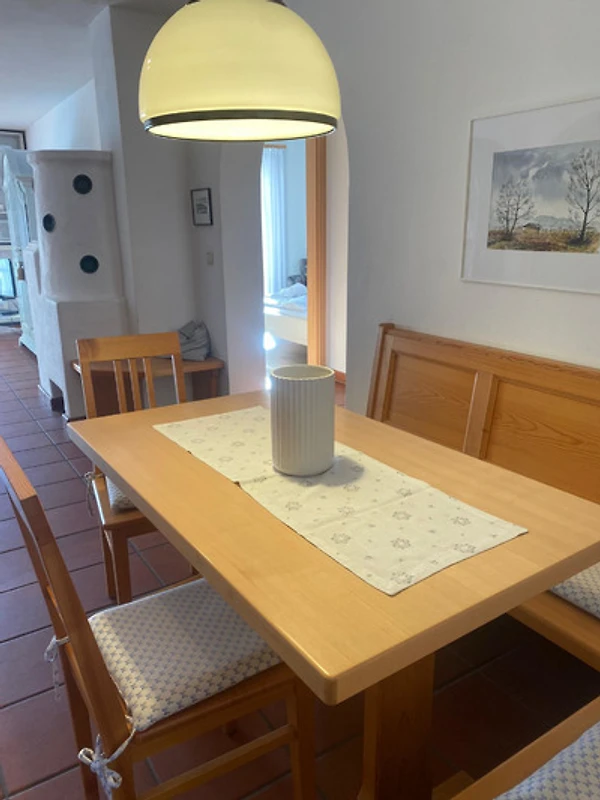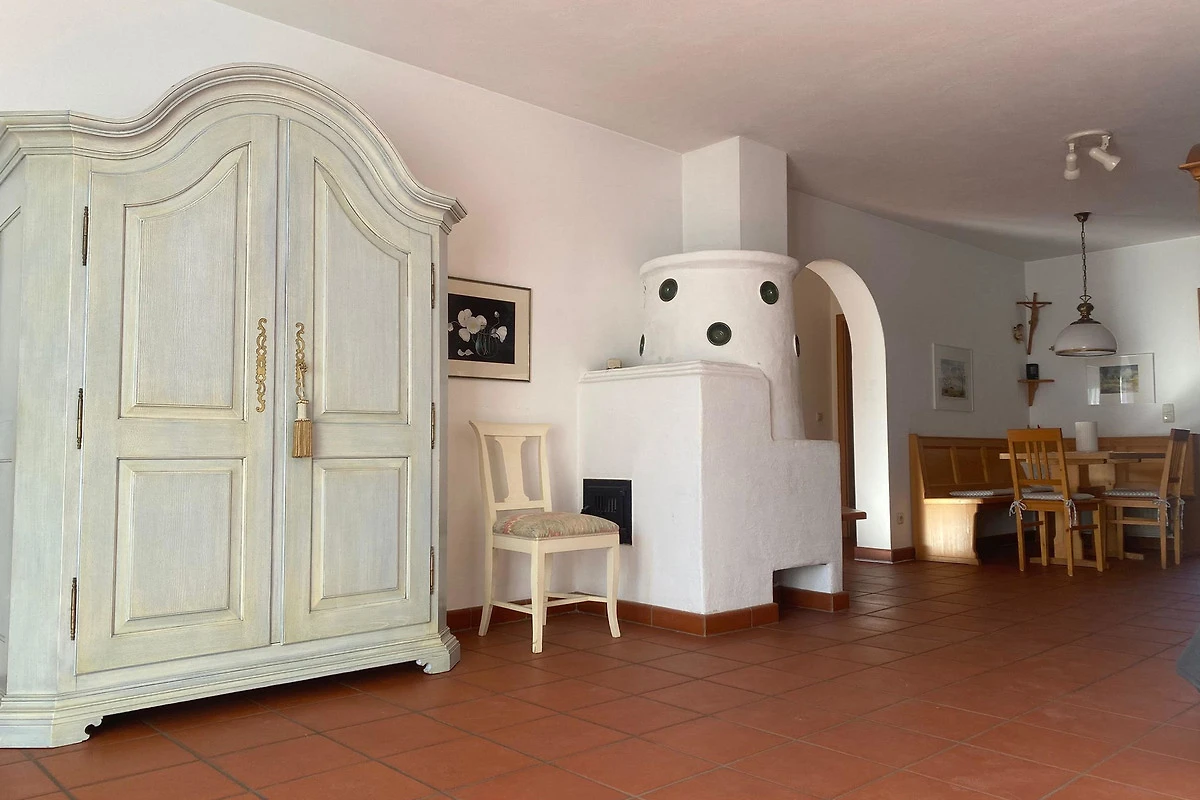 Der grosse Wohnraum ist mit einem gemütlichen Kachelofen, einem Fernseher, DVD-Player und einer Stereo-Anlage ausgestattet. Hier können Sie es sich nach einem ereignisreichen Tag gemütlich machen und entspannen.