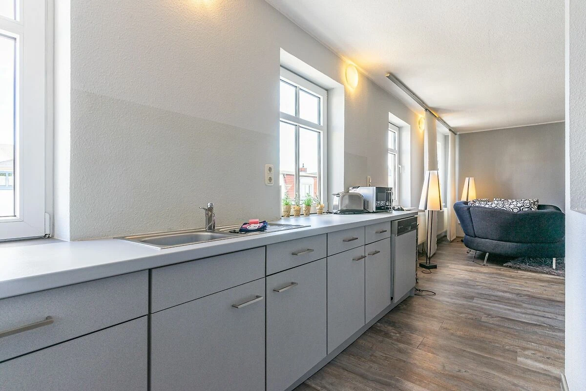 Platz und eine moderne Ausstattung definieren diese sehr großzügige Ferienwohnung im 2. Obergeschoss des Haupthauses vom "Hafenriff".