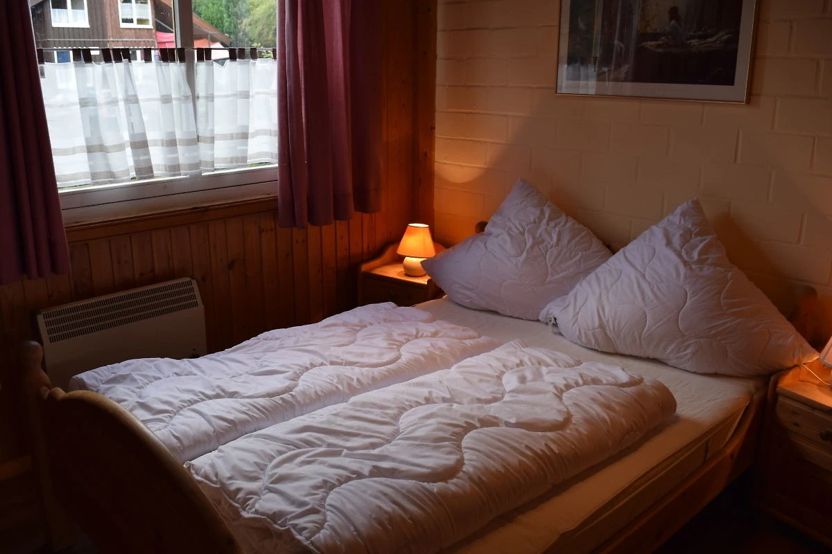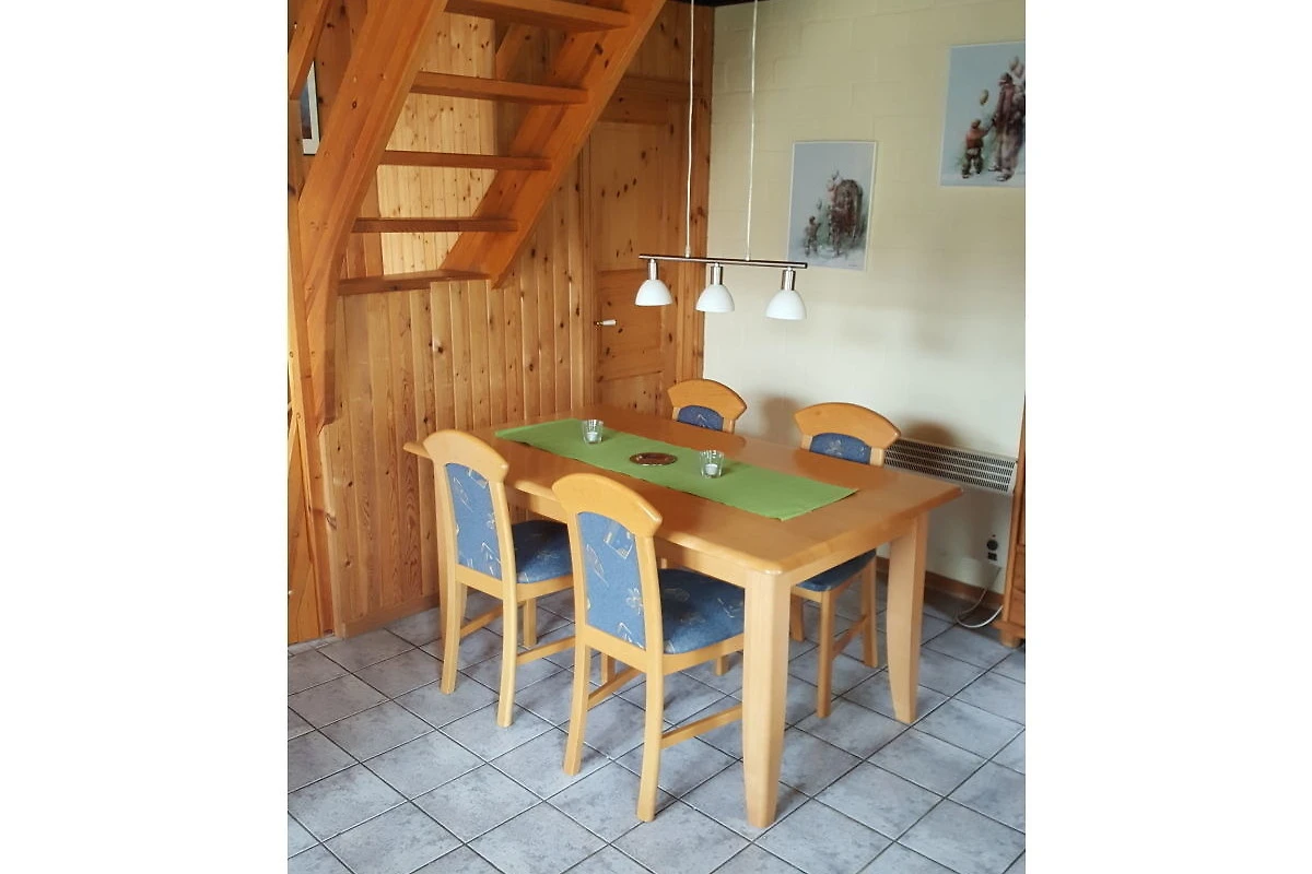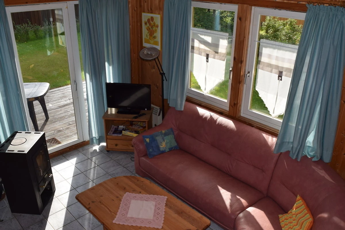 Im hellen Wohnraum befindet sich eine bequeme Sitzlandschaft, ein Essplatz für 5 Personen, sowie ein grosser LCD-TV und ein Kaminofen. Der Internetzugang per Wlan ist im kompletten Haus sowie auf der Terrasse kostenlos vorhanden.