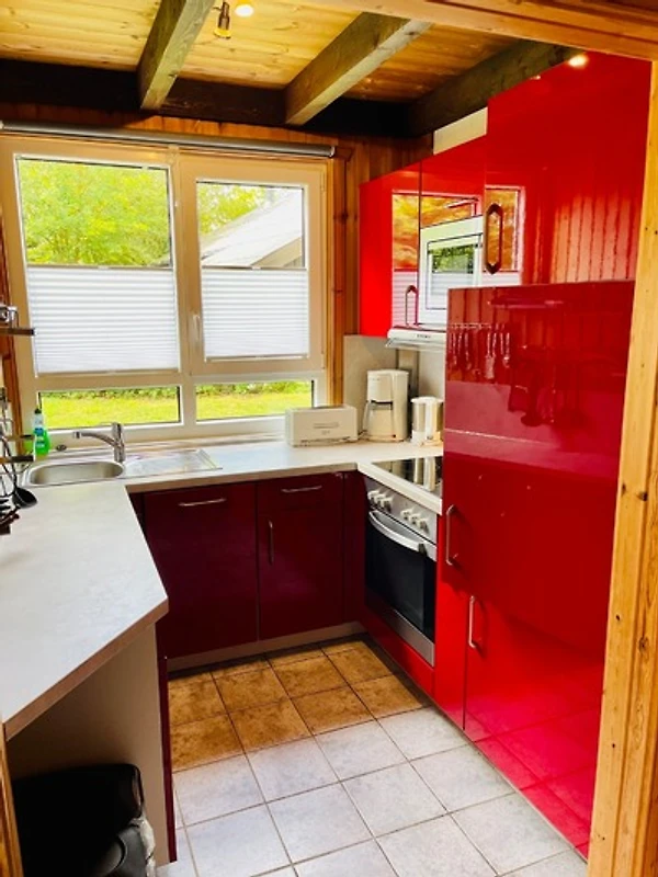 Die zum Wohnraum offene und neue Küche verfügt u.a. über einen Backofen und Ceranfeld, Geschirrspülmaschine, einen Kühlschrank mit Gefrierfach, Mikrowelle, Toaster, Wasserkocher und viele weitere wichtige Utensilien.