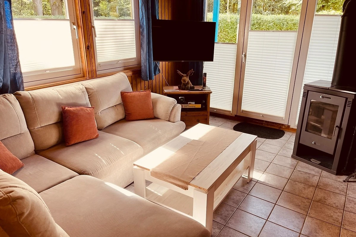 Eine Grundausstattung Brennholz, sowie Anzünder sind bereits im Ferienhaus vorhanden. Die Sitzlandschaft kann als zusätzliche Schlafgelegenheit genutzt werden.