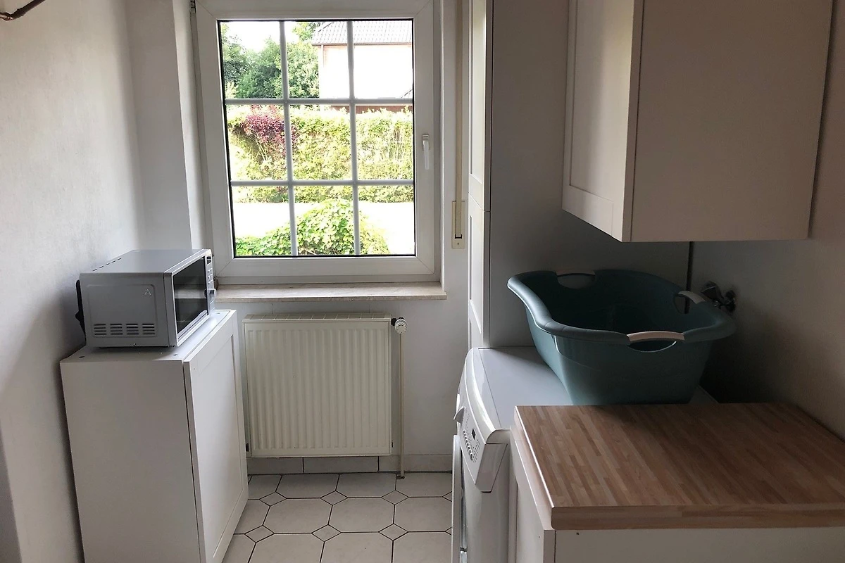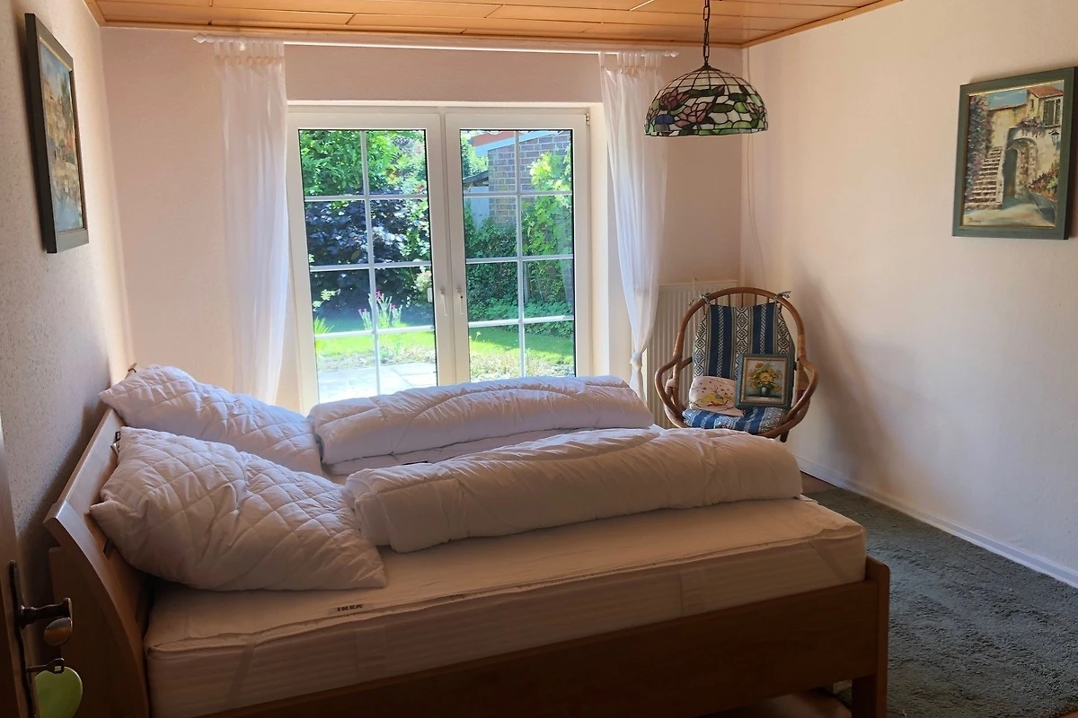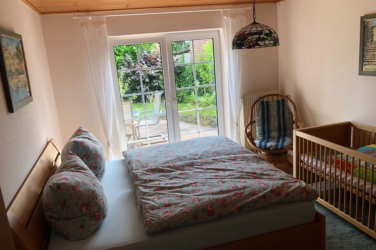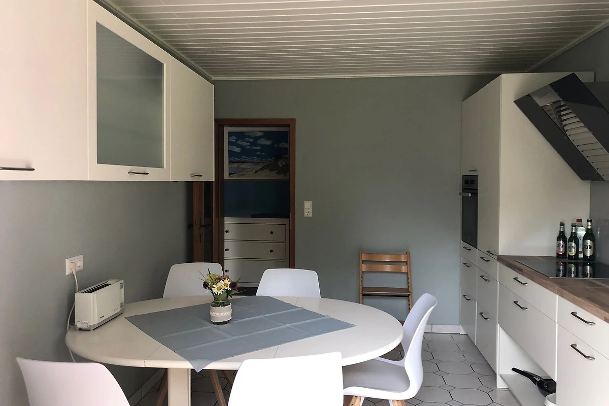 Unser liebevoll eingerichtetes und ebenerdiges 90 qm grosses Ferienhaus bietet ausreichend Platz für bis zu 4 Erwachsene und 2 Kinder (ggf. + 1 Baby) und verfügt über 2 Autostellplätze. Du gelangst von der Haustür aus in einen Vorflur mit Garderobe und einem Gäste WC. Über einen weiteren Flur sind alle weiteren Zimmer erreichbar. Es gibt 2 Schlafzimmer mit jeweils einem Doppelbett. Ein Babybett kann auf Anfrage dazu gestellt werden. Im Wohnzimmer können durch ein Schlafsofa zwei weitere Schlafplätze ermöglicht werden. Das Badezimmer verfügt über eine Dusche sowie eine Badewanne. Die hochwertige Küche beinhaltet neben diversen Elektrogeräten ausserdem eine Spülmaschine. Ein Kinderhochstuhl kann ebenfalls auf Anfrage dazu gestellt werden. Direkt neben der Küche befindet sich ein grosszügiger Hauswirtschaftsraum inklusive Waschmaschine, Bügelbrett und Bügeleisen. Alle Räume verfügen über Aussenjalousien.