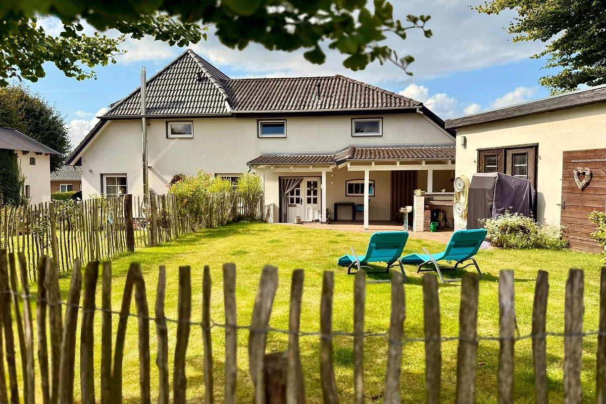 Unser "Ferienhaus Delia" ist eine Doppelhaushälfte mit eingezäuntem Garten, die sich in zweiter Reihe auf der Ostseite unseres Grundstücks befindet. Das Ferienhaus befindet sich im Herzen von Dannewerk und bietet Schlafplatz für bis zu 7 Personen auf 150 qm Wohnfläche (ein zusätzliches Kinderreisebett sowie ein Kinderhochstuhl sind vorhanden). Ein Parkplatz befindet sich direkt am Haus, Fahrräder können in einem separaten Raum untergestellt werden.