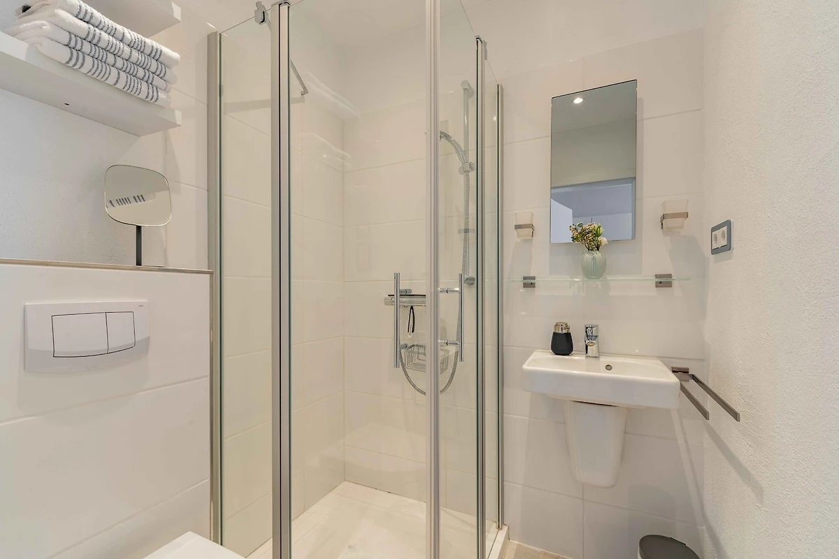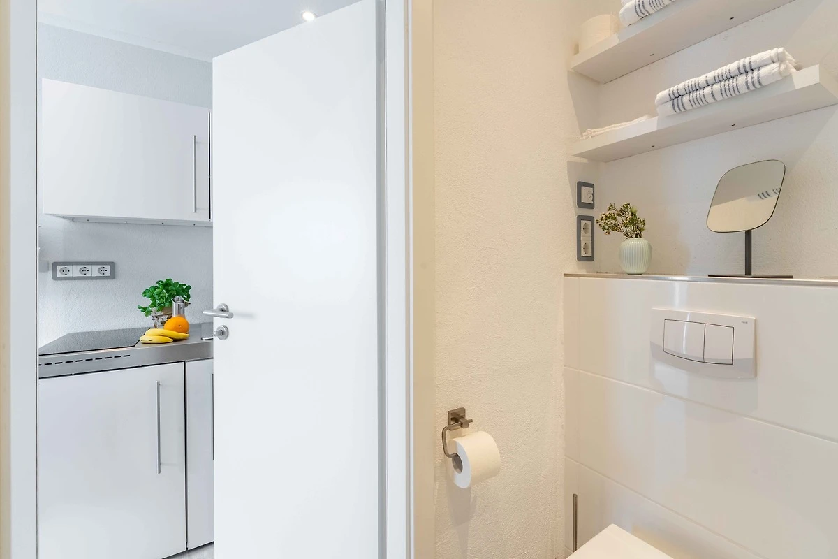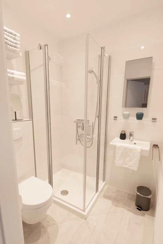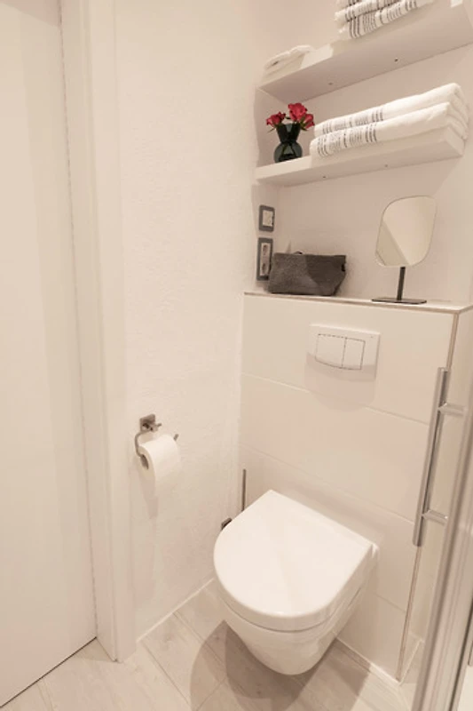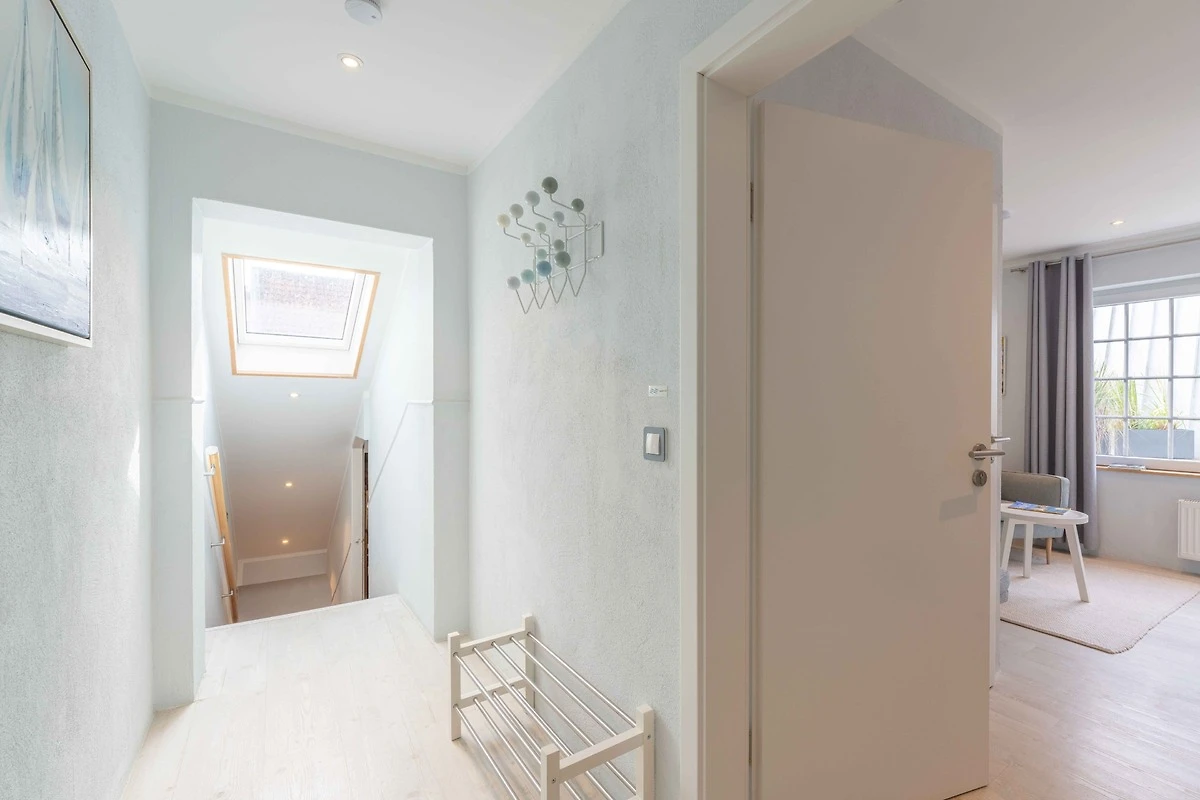 Auf 4 Sterne-Niveau und im norddeutschen Design wurde ein schönes und neues Apartment auf 47 m2 eingerichtet. 18 m2 davon gehören zu einer eigenen Dachterrasse. Das Apartment besitzt ein neues Bad mit WC, Dusche mit bodennahem Eintritt, einem Waschbecken mit Ablage, Wandhaken und Ablagefläche für Kosmetikutensilien. Ausserdem stehen je 2 Handtücher, 2 Duschtücher sowie 2 Bademäntel, eine Badematte sowie ein Föhn zur Verfügung. Im Wohnbereich befinden sich am Eingang eine Garderobe und ein Ganzkörperspiegel. Die Pantryküche besteht aus Kühlschrank, Kochceranfeld, Mikrowelle und Kaffeemaschine, Toaster und Wasserkocher. Zur weiteren Ausstattung gehören Esstisch, Wandklapptisch, 2 komfortable Sesselstühle, ein HD TV und WLAN, ein Boxspringbett (1,60x2,00m) mit Superiortopper und zwei Leselampen + Ablage im Schlafbereich. Das Highlight ist eine eigene Dachterrasse, auf der man sich "weit weg vom Alltag - nur den Wolken und Möwen ganz nah" fühlt. Hier stehen Strandkorb, Lounge Chair und eine Essecke bereit. Im Innenhof mit mehreren Sitzecken warten zudem Strandkorb und Grill. Eine sichere abschliessbare Fahrradunterstellmöglichkeit ist vorhanden. Parkgarage nach Verfügbarkeit.