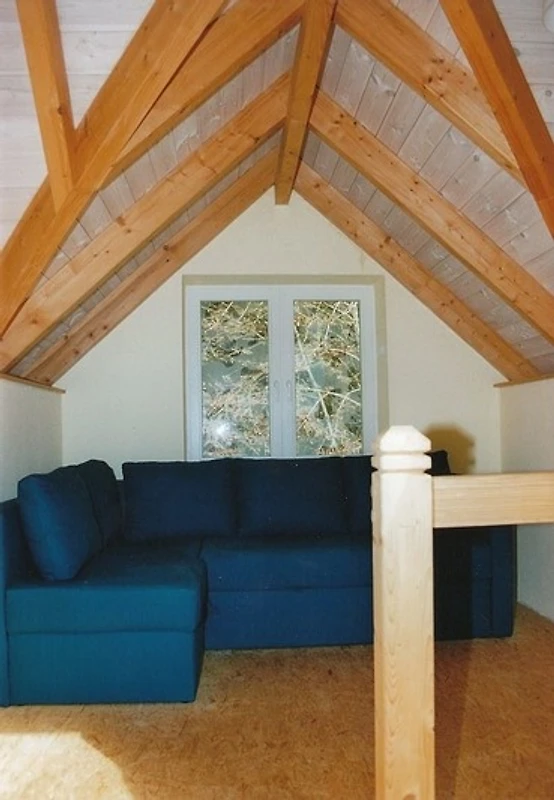 Im Eingangsbereich befinden sich Garderobe, Waschmaschine und Wäschetrockner. Im angrenzenden Wohnzimmer liegen eine gemütliche Sitzecke mit Blick auf den Kaminofen, eine separate Einbauküche mit grossem Esstisch und eine stilvolle Treppe ins Dachgeschoss. Darüber hinaus gibt es im Erdgeschoss ein Badezimmer mit WC und Badewanne/Sitzdusche. Im Obergeschoss befinden sich zwei getrennte Schlafzimmer. Ausserdem finden Sie dort einen Friesen-Giebel mit Ecksofa, welches sich zum Doppelbett umfunktionieren lässt.