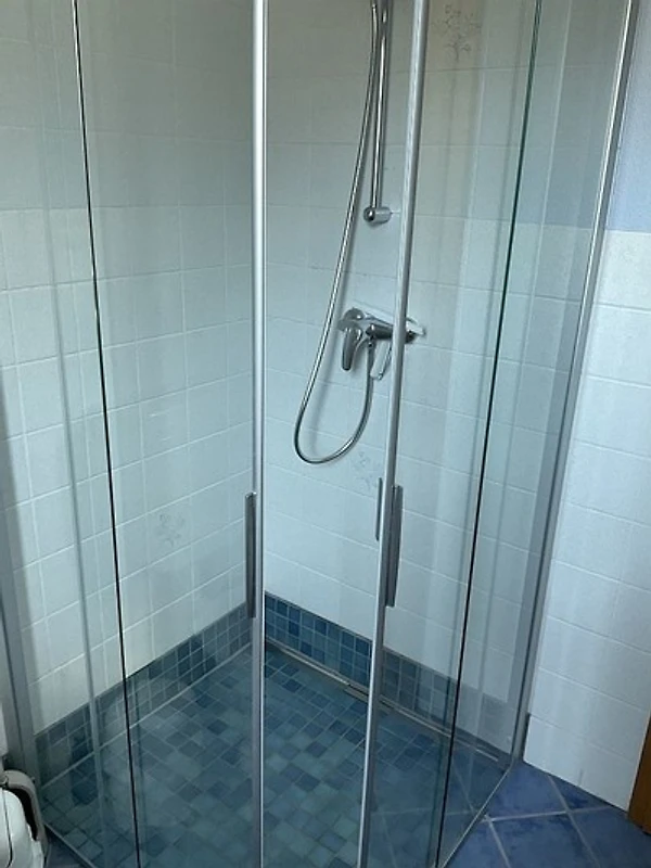 Das Bad ist mit einer komfortablen Niedrigeinstieg-Dusche ausgestattet.