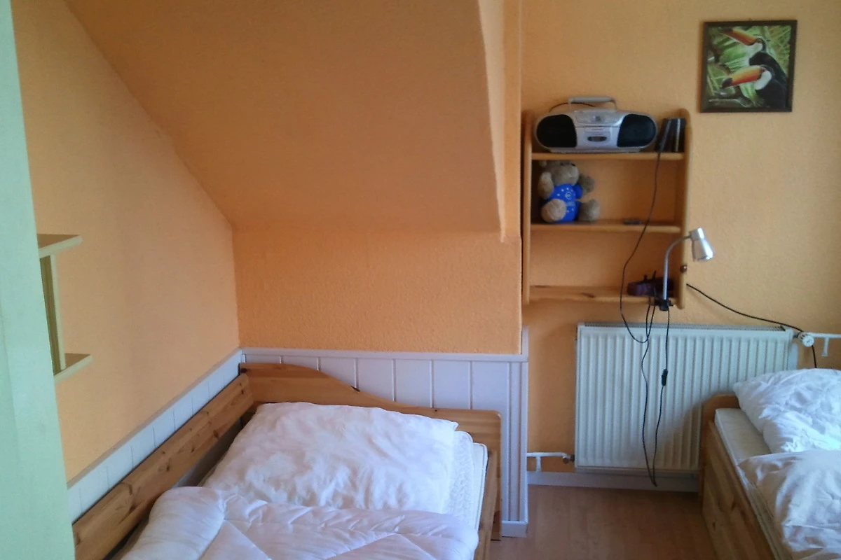 Die gemütliche Wohnung verfügt über zwei Schlafräume (1x Doppelbett, 1x zwei Einzelbetten), einen Wohnraum, eine Küche und ein Badezimmer mit Dusche und WC.