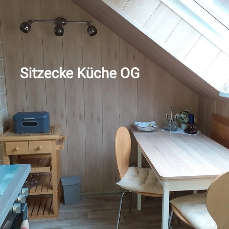 In der Einbauküche finden unsere Gäste Ceranfeldherd/Backofen, Kühlschrank mit Gefrierfach und Kunststeinspüle. Microwelle, Kaffeemaschine, Wasser- und Eierkocher und Minibackofen (Toaster) sind ebenso vorhanden wie Essbesteck, Koch- und Essgeschirr und alles, was man in der Küche so braucht.