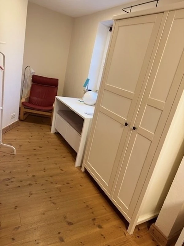 • Schlafzimmer: Doppelbett, Kleiderschrank, ruhige Lage