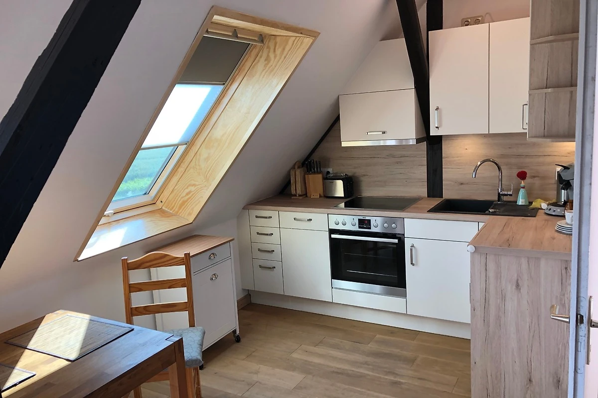 Die Wohnung ist stilvoll eingerichtet und bietet einen traumhaften Blick über Felder und Wiesen.