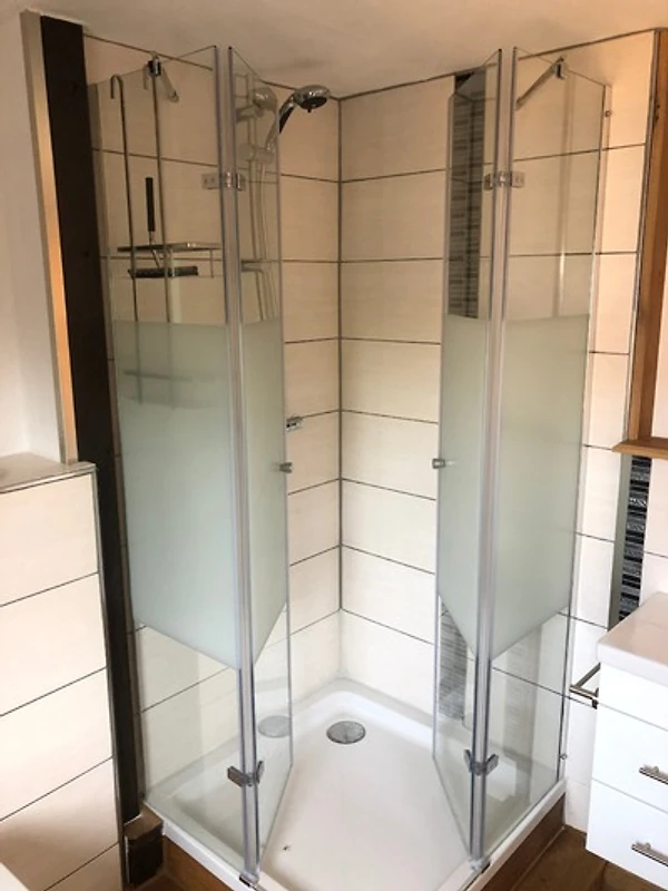 Unsere schöne Ferienwohnung im 1. Stock ist für bis zu zwei Erwachsene und ein Kind eingerichtet und verfügt über einen Schlafraum mit Doppelbett und Kinderbett, ein Wohnzimmer, eine separate Küche und ein Duschbad/WC.
