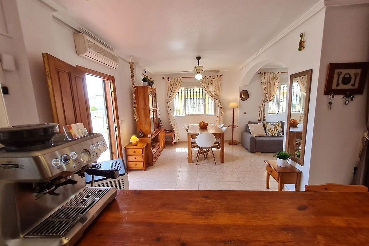 Alicante, Costa Blanca, Region Torrevieja - La Zenia, La Regia bei Cabo Roig60km südlich vom Flughafen AlicanteDas Haus liegt in einer sehr Ruhigen Urbanisation.An einer breiten Strasse, die KEINE Durchgangsstrasse ist -also extrem wenig Verkehr! Damit ist der Ausblick sehr schönund auch die Privatsphäre gewahrt ;)Fussläufig zum sehr schönen, feinsandigen Strand (1.2km Wegstrecke)und zu Supermärkten (ca.1km) und La Zenia Boulevard Einkaufszentrum (ca.1.2km).Ein kleiner Hund ist auch herzlich willkommen.Rauchen bitte nur ausserhalb des Hauses.Der Pool ist ganzjährig geöffnet.Unsere Fahrräder können gerne genutzt werden.Das Haus verfügt über 3 EtagenHochparterre:grosser Wohn- / Essbereich mit Küche und KlimaanlageGäste WC1. ObergeschossHauptschlafzimmer mit Doppelbett, Klimaanlage und BalkonSchlafzimmer mit 2 EinzelbettenBadezimmer2. Obergeschoss / SolariumPrivate Dachterrasse mit entferntem MeerblickDer Pool ist ggü. auf der anderen Strassenseite.Das Haus hat Nord-Ost Ausrichtung.Sonne kann ganztägig auf dem Solarium (Dachterrasse) genossen werden.Wlan ist vorhanden, es kommen ca. 270Mb über 5G Wlan an.Der TV ist neu und smart (kann eure Abos streamen) und hat Kabel mit vielen intl. Sendern. https://olecomunicacion.net/wp-content/uploads/2021/03/TV-OLE-2021.pdfEin beheizbarer Aussen-Whirlpool ist auf dem Solarium installiert.