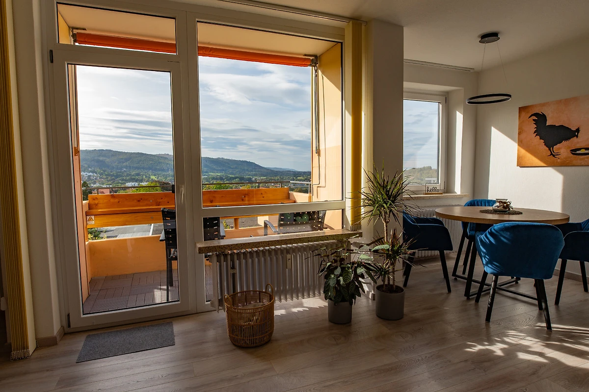 Relaxen Sie im Wohnzimmer auf dem gemütlichen Ecksofa, welches ausziehbar ist und somit 2 weitere Schlafplätze bereithält. Von hier aus können Sie schon den Ausblick über Bad Harzburg geniessen oder Sie nehmen direkt Platz auf dem Balkon.