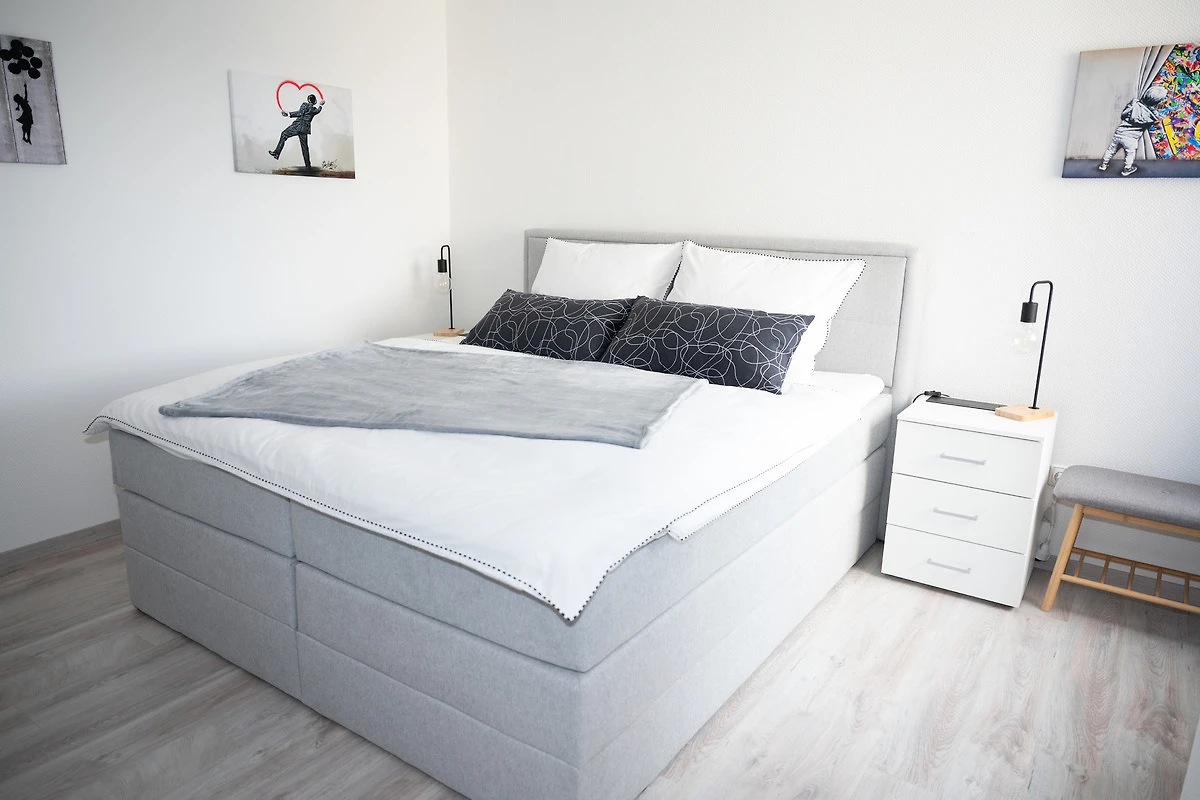 Erholsamen Schlaf nach einem aufregenden Tag finden Sie im Schlafzimmer auf dem modernen Boxspringbett. Ein grosszügiger Kleiderschrank erlaubt es Ihnen, auch ein paar Kleidungsstücke mehr einzupacken. Damit dafür genügend Platz in Ihrem Koffer ist, sind Bettwäsche und Handtücher für Sie inklusive im Übernachtungspreis enthalten.