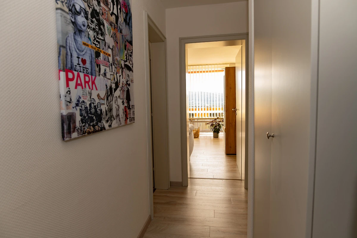 Unsere Ferienwohnung befindet sich in der 6. Etage eines Mehrparteienhauses und ist bequem mit dem Fahrstuhl zu erreichen. Parkmöglichkeiten finden Sie in unmittelbarer Nähe. Eine abschliessbare Unterstellmöglichkeit z.B. für Fahrräder gehört ebenfalls zur Wohnung.