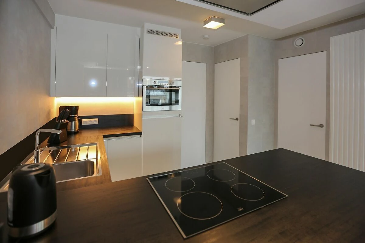 Erleben Sie gehobenes Wohnen an der Küste in dieser eleganten Wohnung im vierten Stock, die mit Liebe zum Detail und Komfort gestaltet wurde. Das Highlight ist die übergroße, sonnendurchflutete Terrasse (3,5 m x 7,5 m), ideal für entspannte Morgen- und Abenddrinks. Ausgestattet mit einem Bartisch, einem Lounge-Set und gepolsterten Sitzgelegenheiten ist sie ein idealer Ort, um die frische Luft zu genießen. Im Innenbereich erwarten Sie hochwertige Möbel, darunter ein gemütliches Schlafsofa mit Matratzenauflage, Digitalfernseher mit Soundbar, elektrische Jalousien und eine voll ausgestattete, moderne Küche mit Kaffeemaschine und Dolce Gusto für Ihre Morgenrituale.