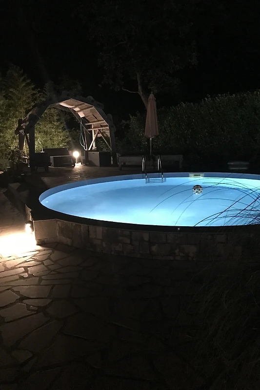 Das Nebengebäude, sog. Kažun, bietet Schlafgelegenheit für zwei Gäste nebst separatem Dusch-WC. Der Rundpool mit 8 Meter Durchmesser steht Ihnen zur alleinigen Nutzung zur Verfügung.
