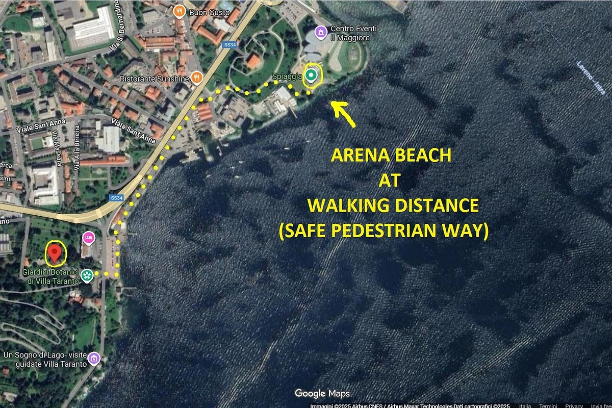 In 100 m Entfernung gibt es einen sicheren und panoramischen Rad-/Fußgängerweg, der am See entlang verläuft und La Petite Dame mit Villa Giulia, den Restaurants, Bars und Stränden von Pallanza und Suna sowie mit Feriolo verbindet.