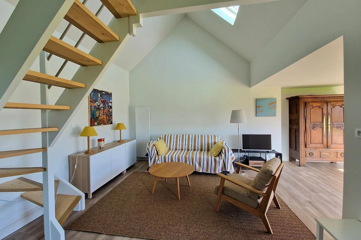 Charmantes Ferienhaus, ideal für ein Pärchen, jedoch dank des bequemen Schlafsofas im Wohnzimmer auch für 4 Personen geeignet. Der Schlafbereich auf dem Dachboden ist über eine moderne, etwas steile Treppe erreichbar. Das gesamte Haus wurde perfekt renoviert, wobei moderner Komfort mit traditionellen bretonischen Elementen kombiniert wurde. Ein besonderes Highlight ist die ruhige, grüne Umgebung, nur wenige Gehminuten vom Strand von Guerzit (ca. 1 km) entfernt.