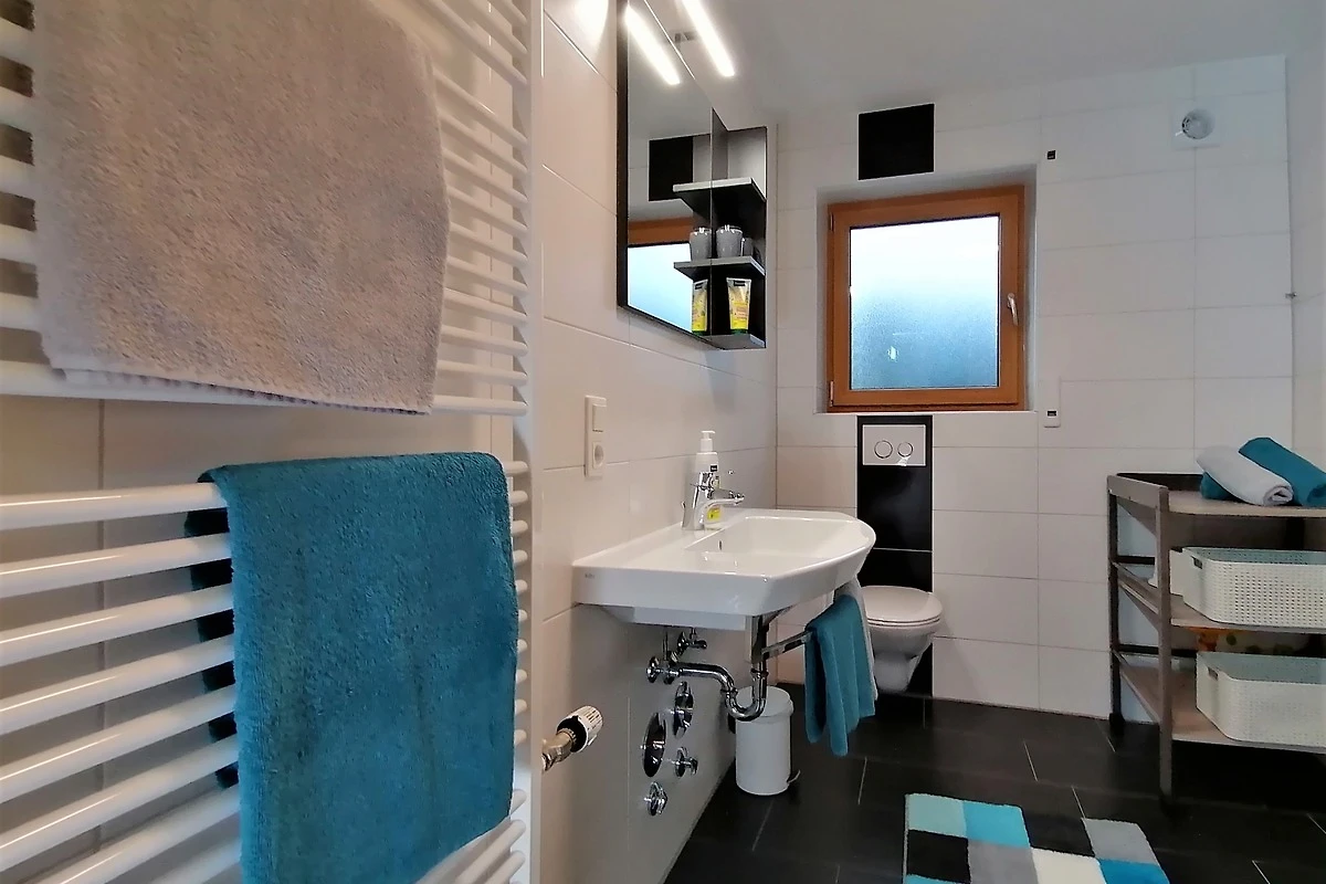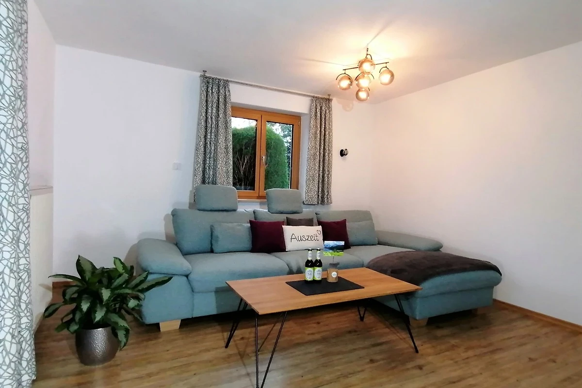 Wohnung "Schlossberg",in 2021 renoviert mit hochwertiger Ausstattung, ca. 56 m², ebenerdig mit Terrasse Richtung Süden mit Garten- und Hofblick, allergikerfreundlich, grosszügiges Wohnzimmer mit bequemer Couch und Sat-TV, Schlafzimmer mit Doppelbett (getrennte Matratzen mit unterschiedlichen Härtegraden und Fussende offen) vom Schreiner gefertigt, Dusche/WC mit ebenerdiger Dusche zum Bequemen Ein- und Ausstieg, Waschbecken, Handtuchtrockner, Föhn. Die separate Küche ist voll ausgestattet (Stereoanlage, Geschirrspüler, Kühlschrank mit Gefrierfach, Herd mit Backofen, Kaffeemaschine, Toaster, Wasserkocher).