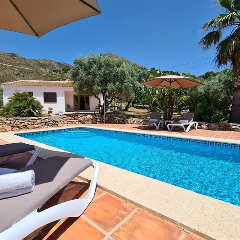 Im malerischen Hinterland liegt unsere Finca. Sie liegt versteckt oberhalb des weissen Bergdorfes Cómpeta auf einem 2000qm grossen Grundstück mit alten Olivenbäumen, duftenden Kräutern und wilden Orchideen. Dieser Ort bietet eine traumhafte Aussicht auf die umliegenden Berge, das fruchtbare Tal und das blaue Mittelmeer. An klaren Tagen sind die Felsen von Gibraltar zu erkennen und am Horizont erscheint das Rifgebirge von Afrika. Die malerischen Gassen von Cómpeta erreichen Sie zu Fuss in 15 Minuten.