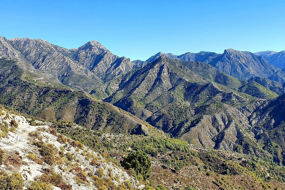 Geniessen Sie den fantastischen Blick auf den 2065m hohen Maroma, den höchsten Berg der Provinz Malaga, der manchmal bis in den April hinein eine Schneehaube trägt.