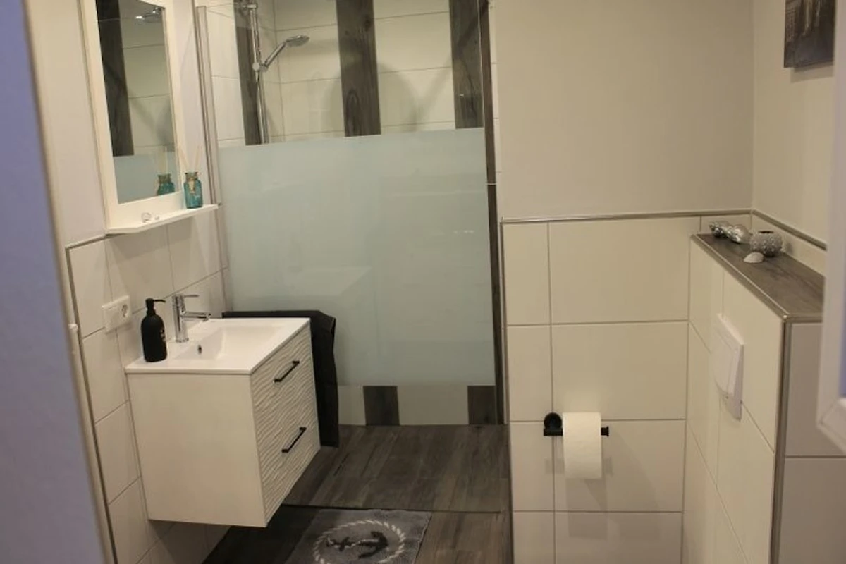 Das frisch renovierte Ferienhaus erstreckt sich mit einer Wohnfläche von 97qm über 2 Etagen und ist für 2-4 Personen konzipiert. Die Einrichtung spiegelt einen modernen, skandinavischen Lebensstil wider, mit viel Liebe zum Detail. Im Erdgeschoss befinden sich Dielenzimmer, Wohn-/Esszimmer, Küche und Bad. Im Dielenzimmer ist Platz für Ihre Jacken, Schuhe und Taschen und bietet zusätzlichen Stauraum für mitgebrachte Dinge. Das lichtdurchflutete Wohn-/Esszimmer, mit bequemer Sitzecke, lädt zum Verweilen und Erholen ein. Für Ihre Unterhaltung sorgen ein TV-Gerät, Gesellschaftsspiele, kostenfreies W-LAN und ein wenig Lektüre zum Stöbern und Träumen. Die Küche ist voll ausgestattet. Egal, ob Gläser, Besteck, Geschirr, Töpfe.... auch elektronische Geräte wie Herd, Backofen, Geschirrspüler, Kühlschrank mit kleinem Gefrierfach, Kaffeemaschine, Wasserkocher, Mikrowelle stehen zur Verfügung. Nach Ihrem Einkauf, vielleicht in einem der zahlreichen Hofläden in der Region, können Sie direkt mit dem Kochen beginnen. Von der Küche ist ein direkter Zugang zur überdachten Terrasse, sodass Sie Ihre Mahlzeiten auch im Freien geniessen können. Das moderne Bad mit ebenerdiger, grosszügiger Dusche, zwei Tageslichtfenstern und Fussbodenerwärmung ist eine kleine Wellnessoase. Handtücher und ein Haartrockner werden bereitgestellt. Im Obergeschoss befinden sich 2 Schlafzimmer, jeweils mit einem gemütlichen Doppelbett ausgestattet. Eine Ablage für Ihren Koffer und grosszügigen Schrankflächen gehören zur Grundausstattung. Einen erholsamen Schlaf und geruhsamen Nächten stehen nichts im Wege, aufgrund der ländlichen Ruhe, auch bei offenem Fenster möglich.