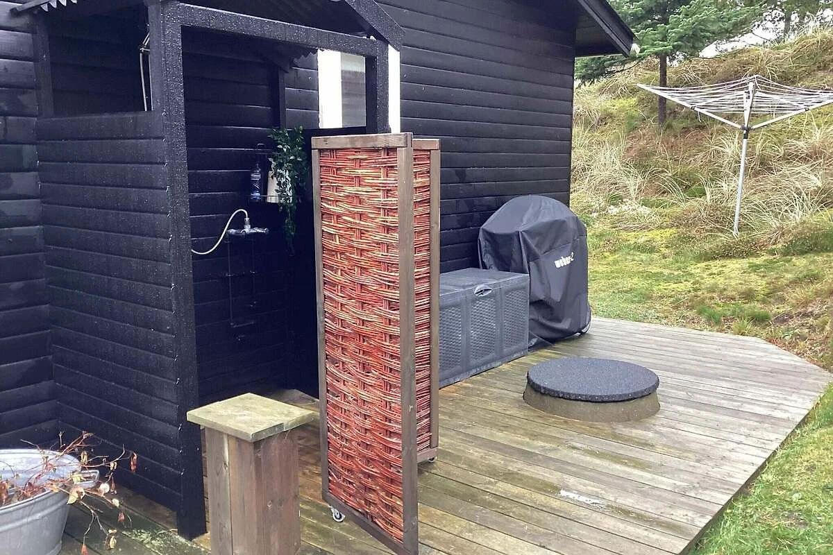 Kleineres und absolut gemütliches Ferienhaus mit einzigartiger Lage inmitten wunderschöner Natur, perfekt für einen Pärchenurlaub mit langen Spaziergängen an der Nordsee und guten Abendessen in Blokhus. Im Inneren herrscht eine gemütliche und warme Wohnatmosphäre mit vielen schönen Einrichtungsdetails. Mit dem Holzofen im Wohnzimmer und guten Möbeln sind viele erholsame Stunden möglich. Der offene Wohnraum besteht aus Ess- und Wohnzimmer und einer kleinen Küche. Darüber hinaus verfügt das Häuschen über ein Schlafzimmer mit Doppelbett und ein Schlafzimmer mit Etagenbett mit zwei Kojen. Dazu schönes Badezimmer mit Dusche. Das Ferienhaus liegt versteckt in den Dünen, sodass Sie ganz für sich sein können. Es gibt eine offene Terrasse und im Sommerhalbjahr eine praktische Außendusche. Das Grundstück ist wunderschön abgeschirmt, sodass Sie immer ein privates Plätzchen an der Sonne finden. Keine Vermietung an Jugendgruppen erwünscht!Kurz vor Ihrem Ankunftsdatum kann eine rückzahlbare Kaution erhoben werden. Die Kaution stellt sicher, dass Ihr Aufenthalt reibungslos verläuft, und deckt eventuelle Zusatzleistungen oder Verbrauchskosten ab.Diese Kaution deckt den Verbrauch von Nebenkosten während Ihres Aufenthalts sowie zusätzliche in Anspruch genommene Leistungen ab.Der endgültige Betrag wird anhand der tatsächlichen Zählerstände und Nutzung zusätzlicher Services angepasst. Ein etwaiger Restbetrag wird Ihnen innerhalb von 21 Tagen nach dem Check-out zurückerstattet.Die Kaution dient lediglich als Vorauszahlung für Leistungen, die Sie ohnehin bezahlen würden, und ermöglicht einen reibungslosen Ablauf Ihres Aufenthalts und Check-outs.