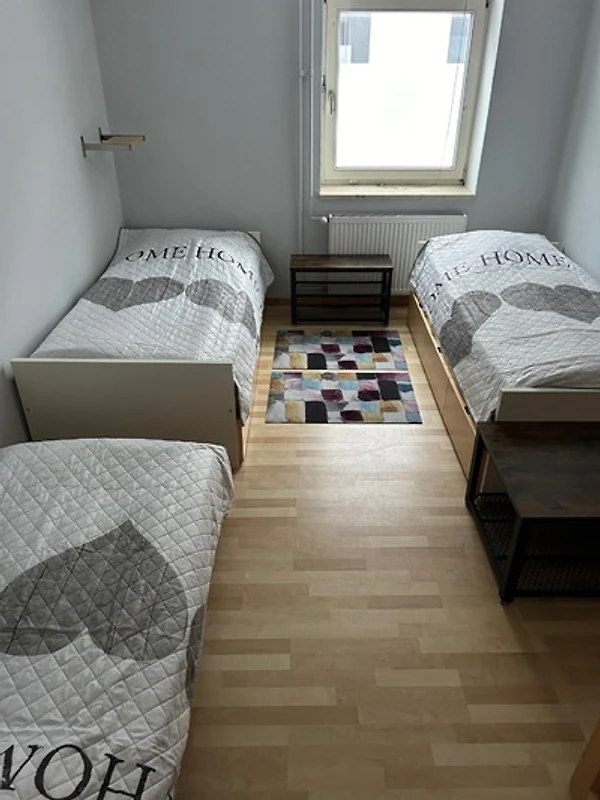 Drei grosse Betten bieten Kindern und auch erwachsenen Gästen den nötigen Schlafkomfort. Ein Kleiderschrank sowie Bettkästen bieten genügend Raum für das Gepäck.