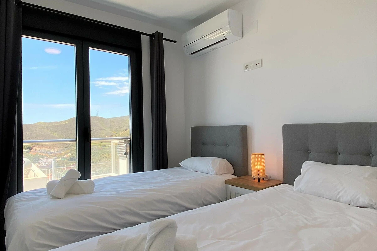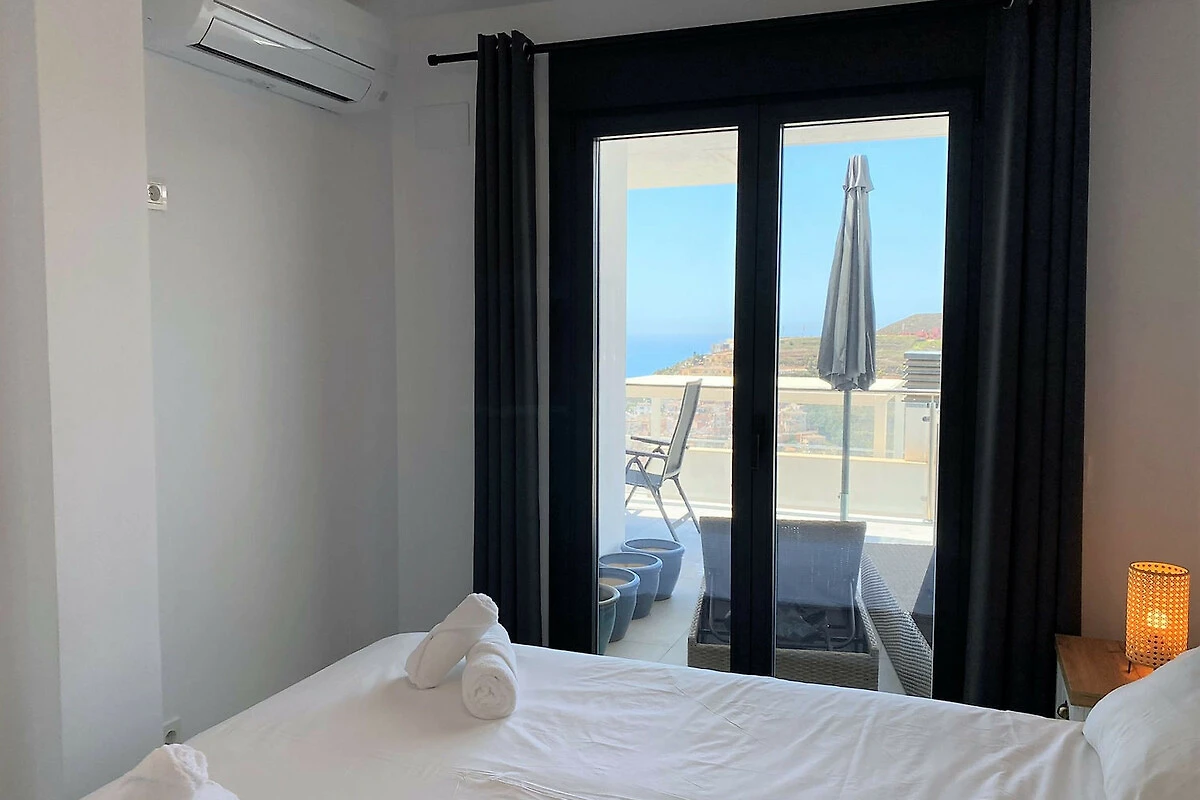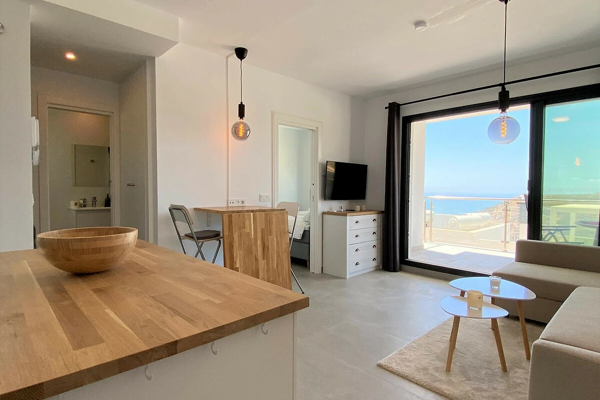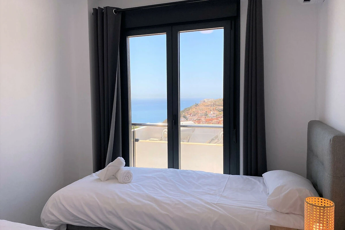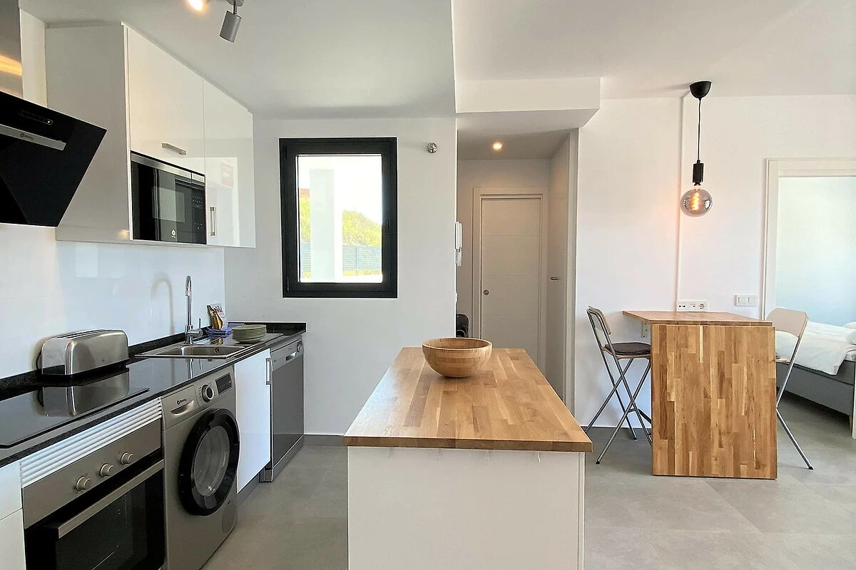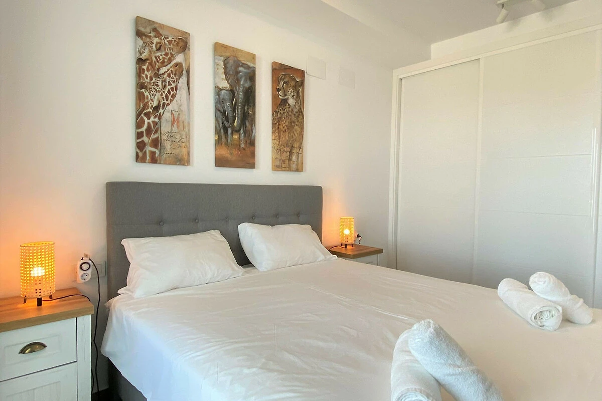 Die Immobilie: Diese moderne Unterkunft ist auf Komfort und Stil optimiert. Sie verfügt über zwei zum Meer hin ausgerichtete Schlafzimmer, sodass Sie jeden Morgen vom Bett aus den blauen Horizont geniessen können; eines mit einem Doppelbett und das andere mit zwei Einzelbetten. Die Wohnung verfügt über ein komplettes Badezimmer mit einer Dusche in zeitgenössischem Design und eine hochmoderne Küche, die komplett mit hochwertigen Geräten ausgestattet ist.