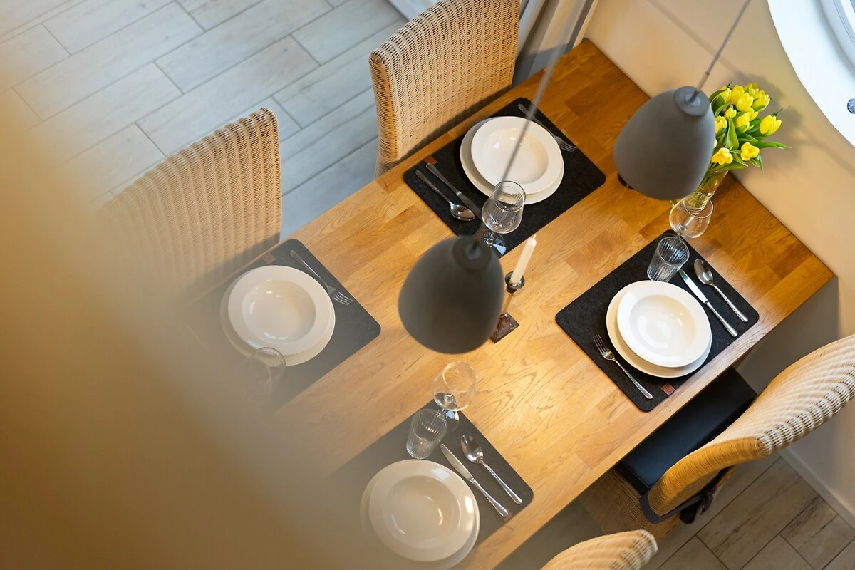 Das "Rapsblütenhaus" ist mit 110 m² auf zwei Ebenen ein herrlich geräumiges Ferienhaus zum Wohlfühlen. Es wurde 2017 neu erbaut und liegt im westlichen, besonders ruhigen Bereich der Ferienhaussiedlung Hülsen. Nach Nordosten (Morgensonne!) eröffnen sich schöne Ausblicke auf das Biotop und den Yachthafen Marina Hülsen, nach Westen schauen Sie aus dem Obergeschoss auf die Schlei.