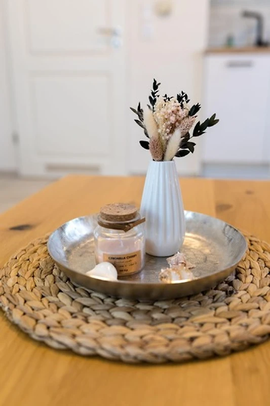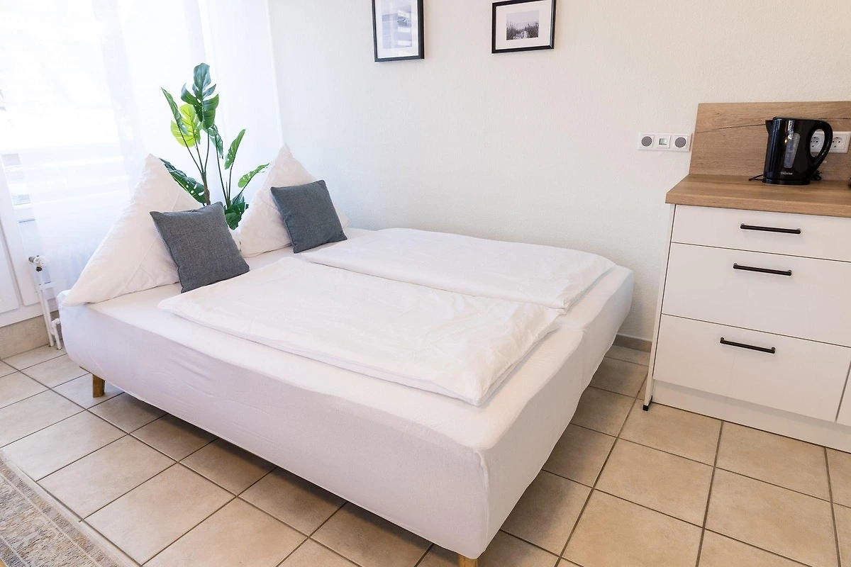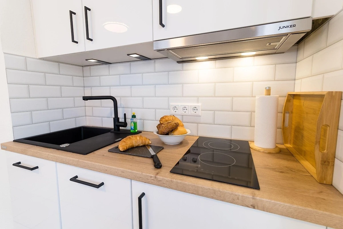 In dieser charmanten Ferienwohnung erwartet den Gast eine gut durchdachte Raumaufteilung, die Komfort und Funktionalität vereint. Das Schlafzimmer ist mit einem gemütlichen Doppelbett ausgestattet, während das Wohnschlafzimmer eine Schlafcouch für zusätzliche Flexibilität bietet. Die offene Küche eignet sich hervorragend zum Zubereiten von Mahlzeiten und ist ausgestattet mit modernen Geräten, darunter ein Geschirrspüler, Elektro- und Gasherd, Backofen, Mikrowelle, Kühlschrank und Toaster. Auch eine Kaffeemaschine sowie ein Eierkocher zählen zur Ausstattung. Das stilvolle Badezimmer mit Fenster und Duschbad verfügt über einen Haartrockner und einen Spiegel. WLAN-Internetzugang ermöglicht jederzeit Verbindung, während die HiFi-Anlage und der Fernseher für Unterhaltung sorgen. Für Familien steht ein Kinderhochstuhl bereit. Ein Parkplatz ist ebenfalls vorhanden. Diese Allergiker geeignete Wohnung bietet den perfekten Rückzugsort für einen erholsamen Aufenthalt.