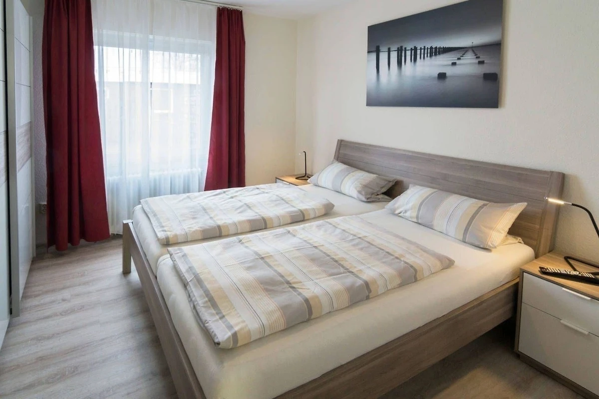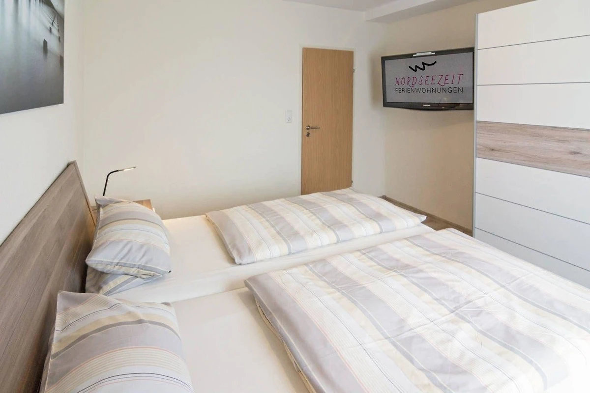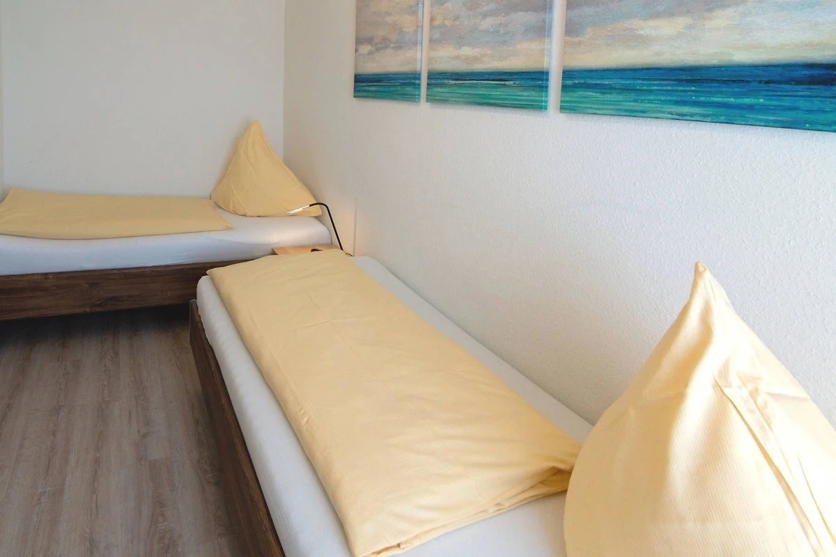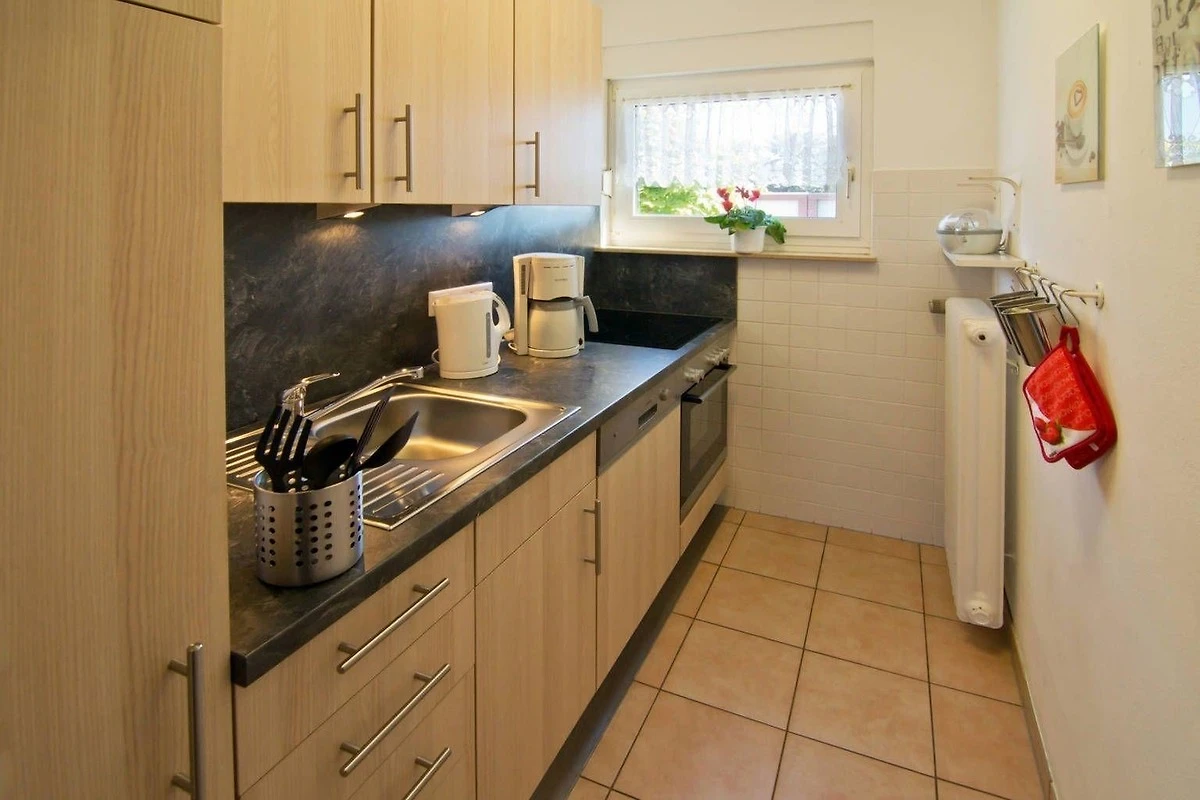 Die Ferienwohnung bietet eine komfortable und allergikergeeignete Umgebung, ideal für entspannte Aufenthalte. Sie verfügt über zwei Schlafzimmer, darunter ein Doppelbett und zwei Einzelbetten, die ausreichend Platz für bis zu vier Personen bieten. Die separate Küche ist voll ausgestattet mit einem Geschirrspüler, Elektro-/Gasherd, Backofen, Kühlschrank, Kaffeemaschine sowie Toaster, und ermöglicht eine einfache Zubereitung von Mahlzeiten.