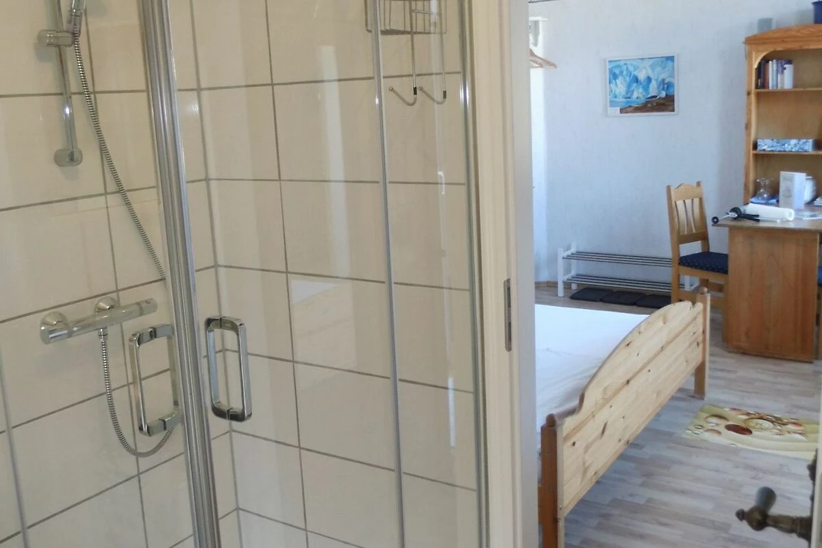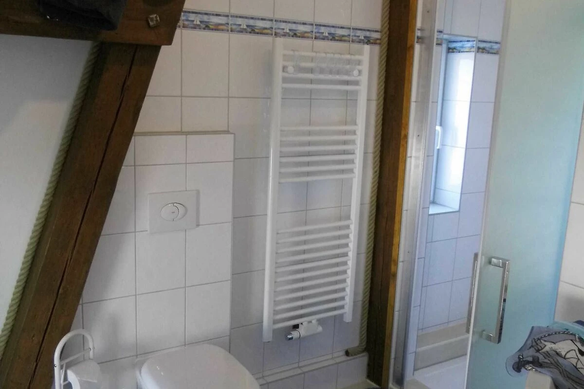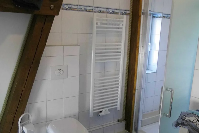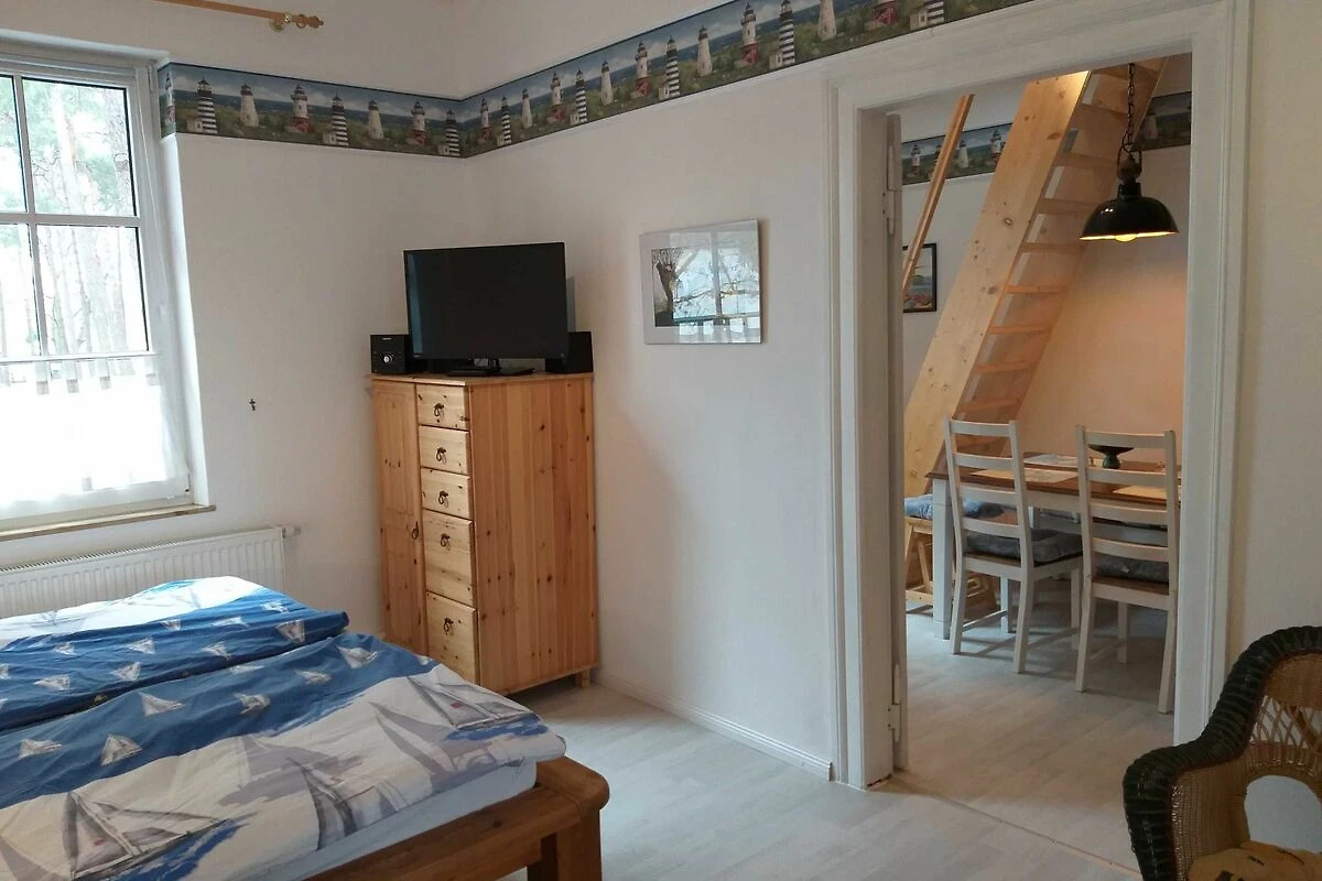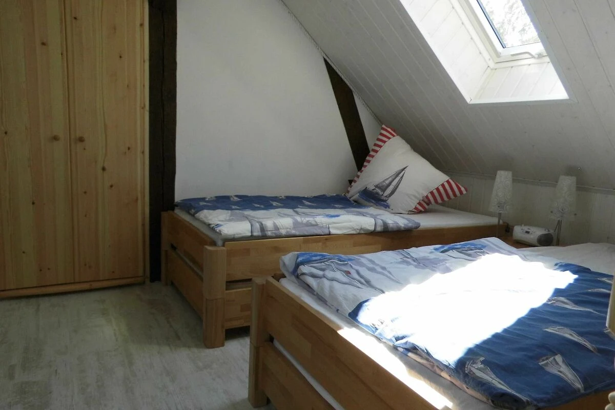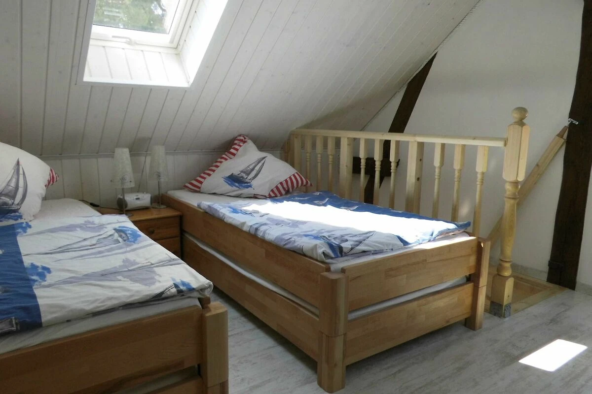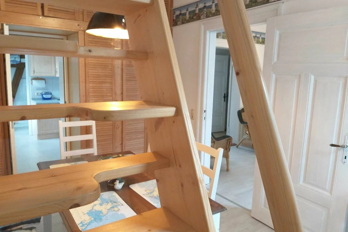 Die komfortable Ferienwohnung (54qm), bietet Platz für 5 Erwachsene, aufgeteilt in zwei Schlafzimmer, ein Esszimmer, Küche und Badezimmer. Der Wohn-/Schlafraum ist eingerichtet mit einem Doppelbett (200/180) mit verstellbaren Lattenrosten am Kopf - & Fussenden), einer Sitzecke, TV, Radiowecker, Musikanlage und einer Garderobe. Den zweiten Schlafraum erreicht man über eine Raumspartreppe in das Dachgeschoss. Hier stehen 2 Stapelbetten (200cm x 90cm), diese zu 3 oder sogar 4 Betten umgestapelt werden können.