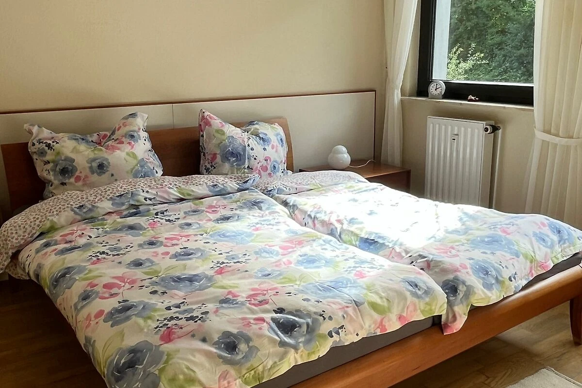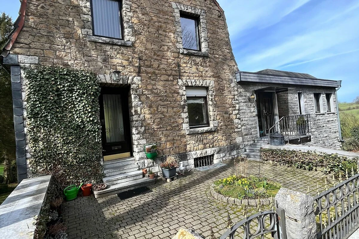 Die Wohnung befindet sich in einem historischen Bruchsteinhaus mit einem grossen Anbau.