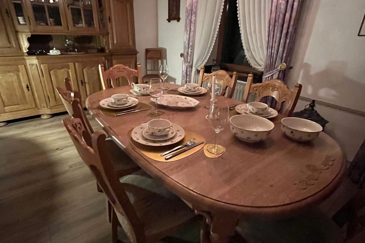 Von der Wohndiele betreten Sie über einen gemauerten Bruchsteintürbogen das grosse Esszimmer.