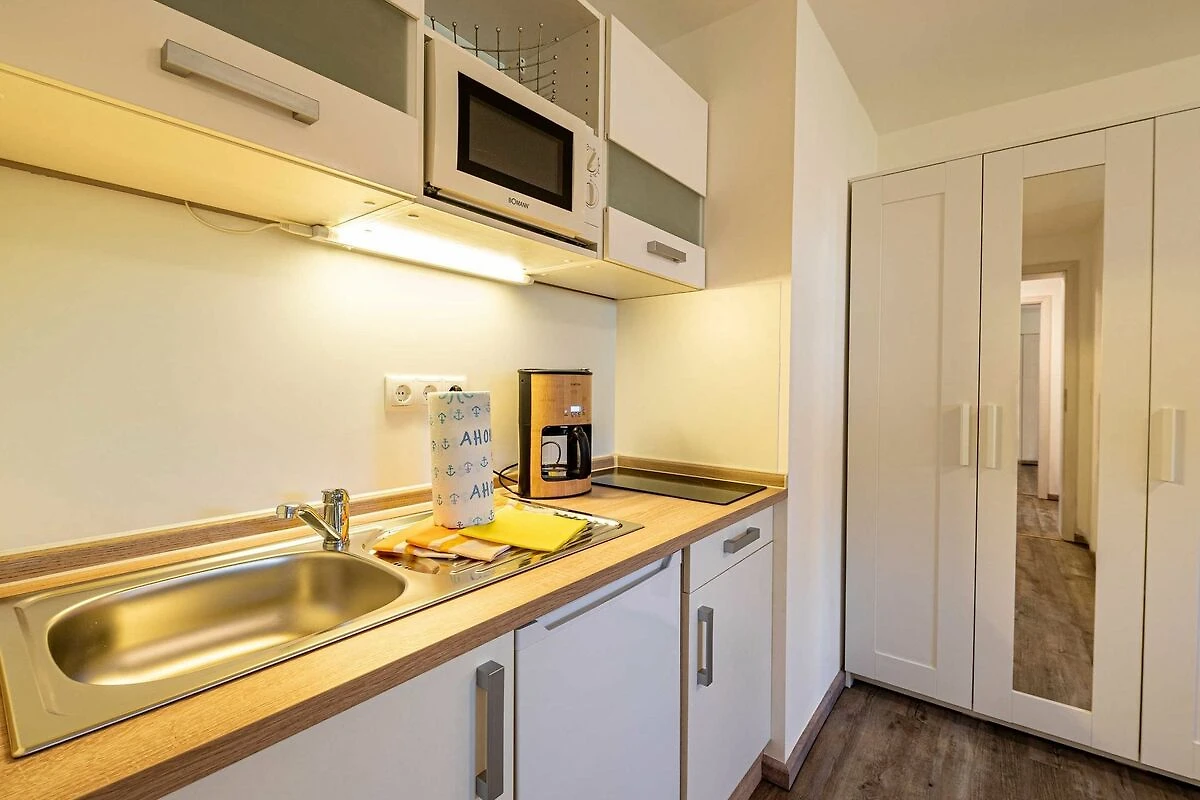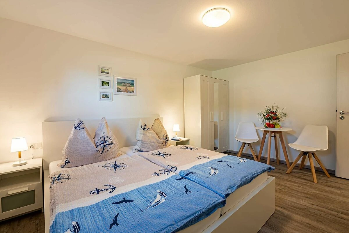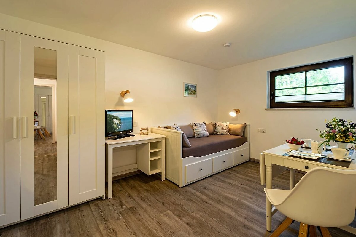 Unser 2-Raumappartement Kormoran liegt im Souterrain (ohne Seeblick, zum Nachmittag ist diese Wohnung sonnendurchflutet) unseres Wohnhauses und ist über eine Aussentreppe mit separatem Eingang zu erreichen. In diesem Appartement ist kein Seeblick vorhanden. Es ist ca. 40 qm gross, hell und freundlich, hat Platz für maximal 3 Erwachsene (Kinder ab 3 Jahren) und wurde modern und komfortabel eingerichtet.